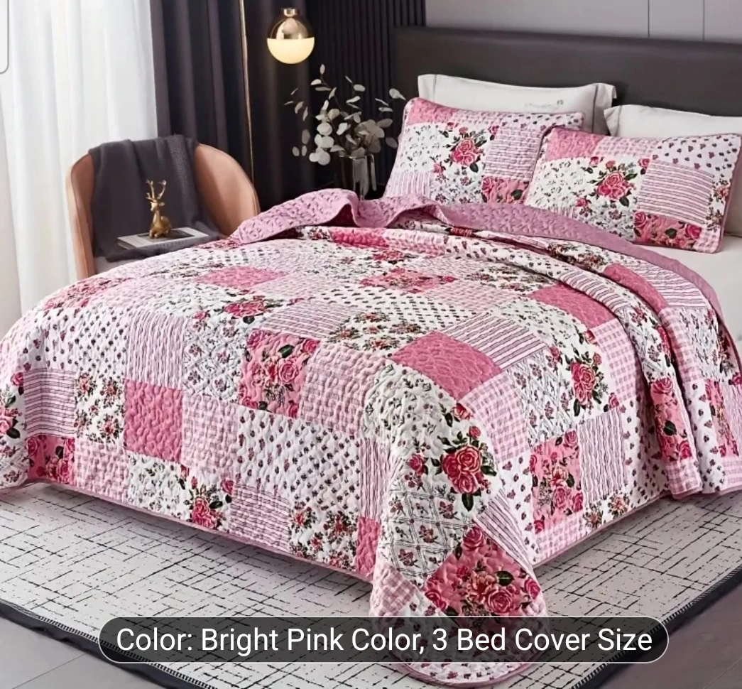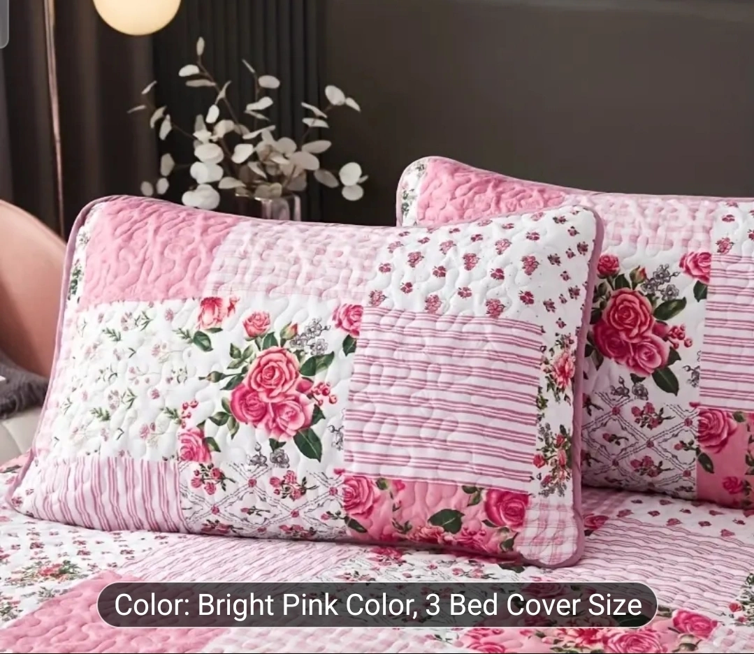 Bright Pink floral king size quilt set, perfect for adding a touch of charm to your bedroom! This set fits a 3-bed and features a lovely floral design