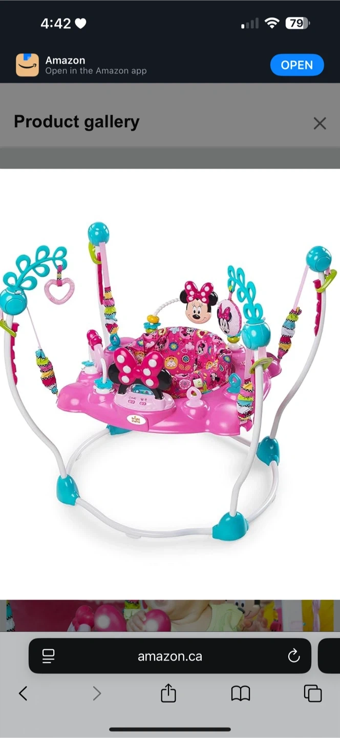 Looking to sell this Bright Starts Minnie Mouse Jumper! It's pink and has lots of fun Minnie Mouse details. Perfect for keeping your little one entertained and active. It's in great shape and ready for a new home!