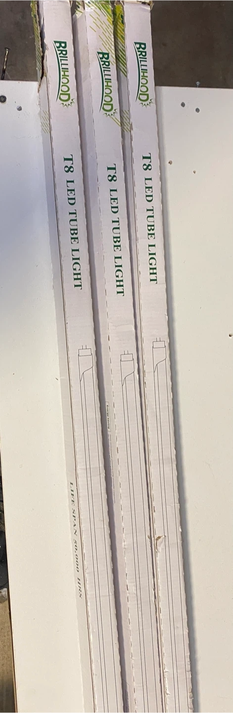 Selling Brillihood T8 LED tube lights. These lights have a lifespan of 50,000 hours. Great for energy saving!