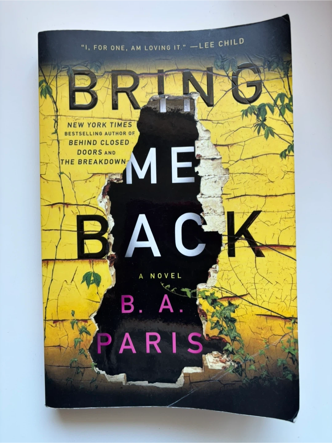 Selling the book Bring Me Back by B.A. Paris! It's a thriller and suspense novel that will keep you on the edge of your seat. Perfect for anyone who loves a good mystery!