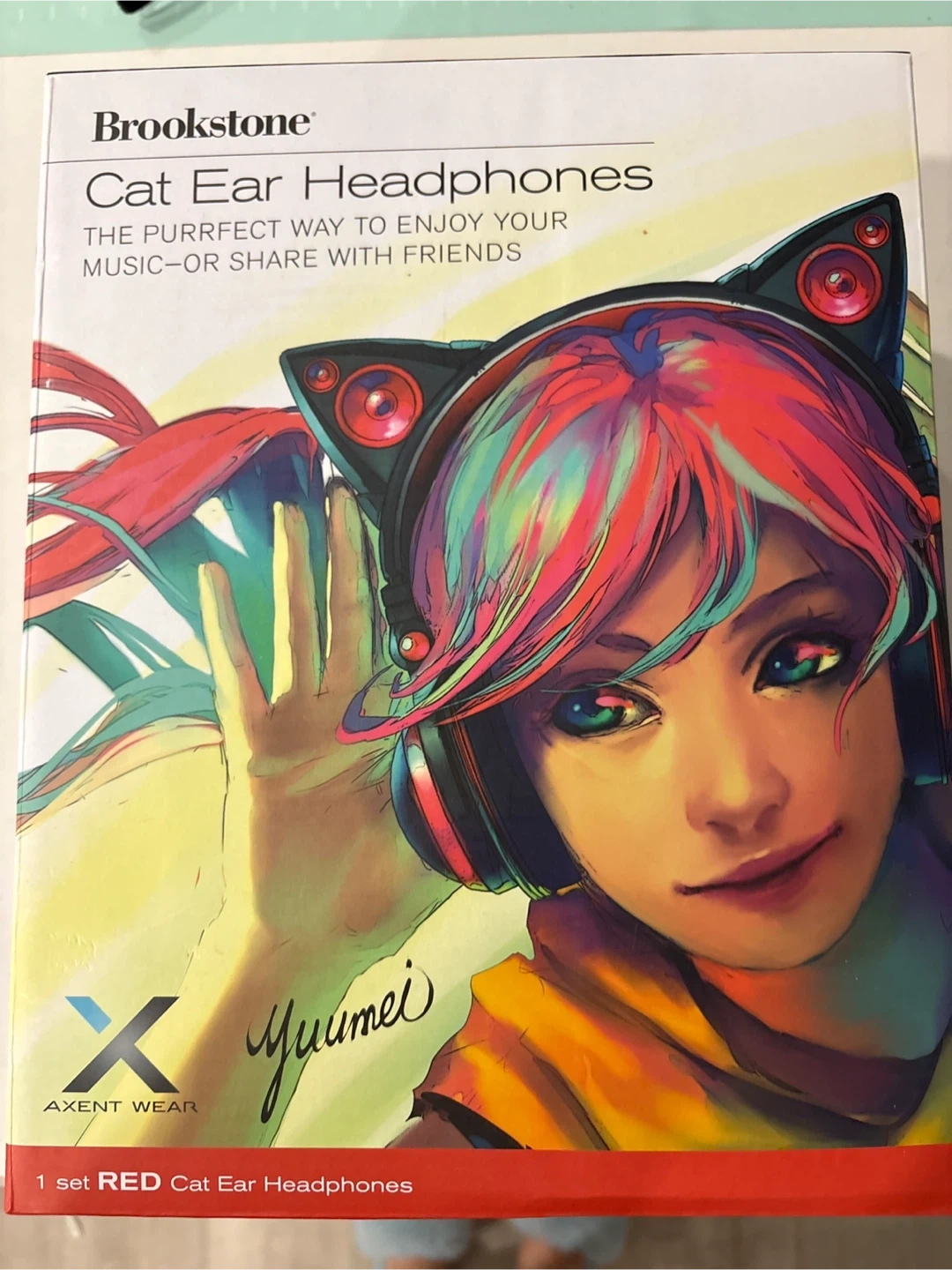 Selling a set of Brookstone cat ear headphones in red! They're in great condition and come with the original box. The purrfect way to enjoy your music or share with friends! Brand New never used
