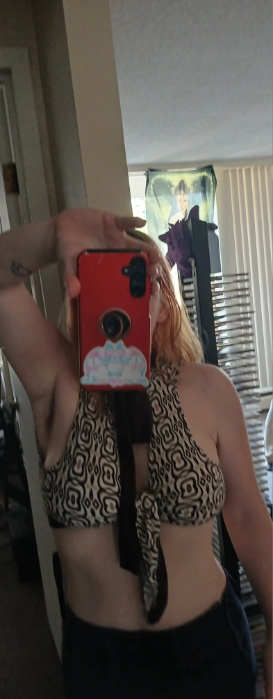 just a little something i made, super comfy and soft material, tie up shirt with nect straps, very 70s style.
