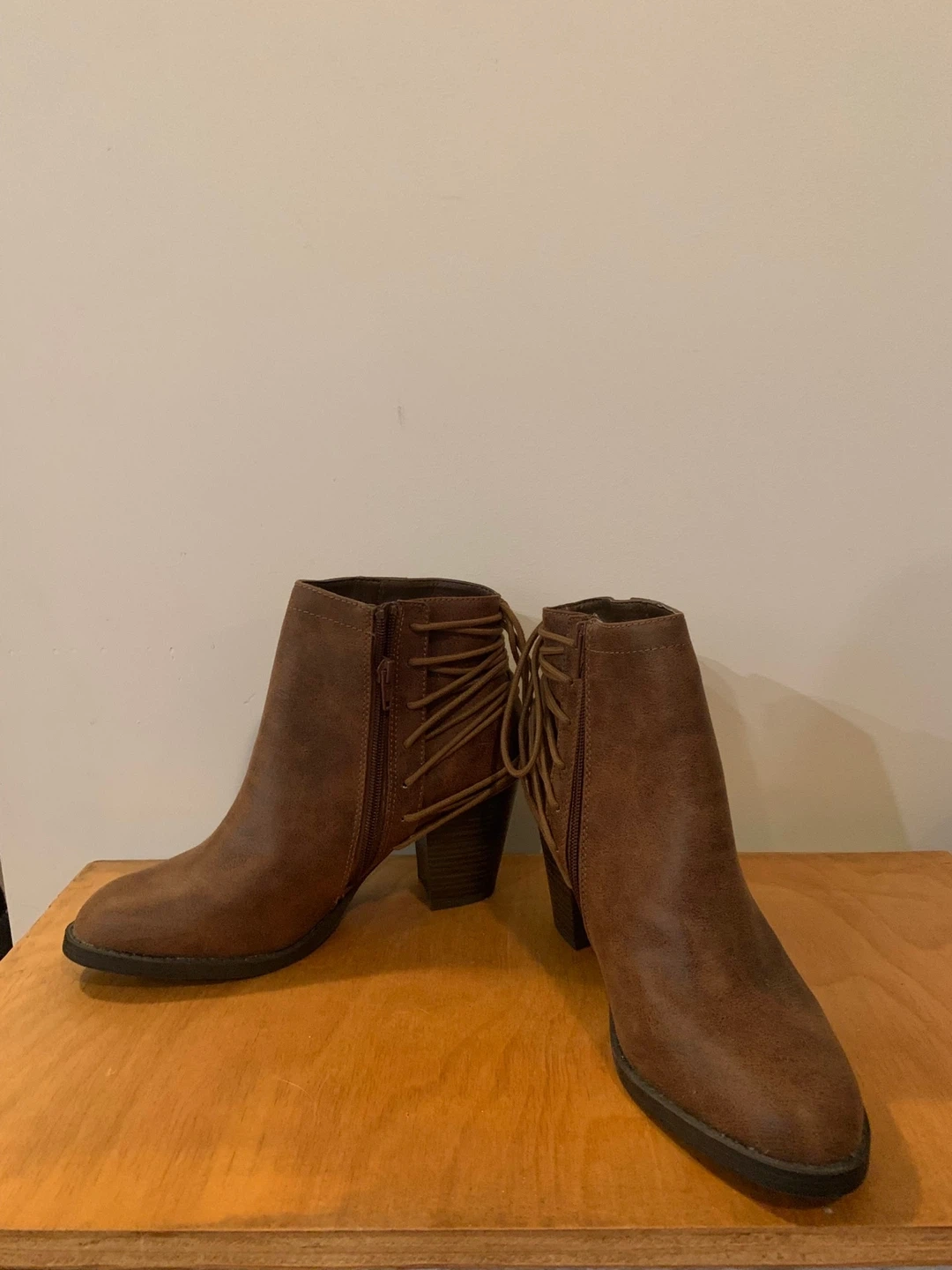 Selling a pair of Madden brown ankle boots .They're a size 9.5 and feature a unique lace-up detail at the back. Brand new never worn. Pick up at 200st & 68 ave