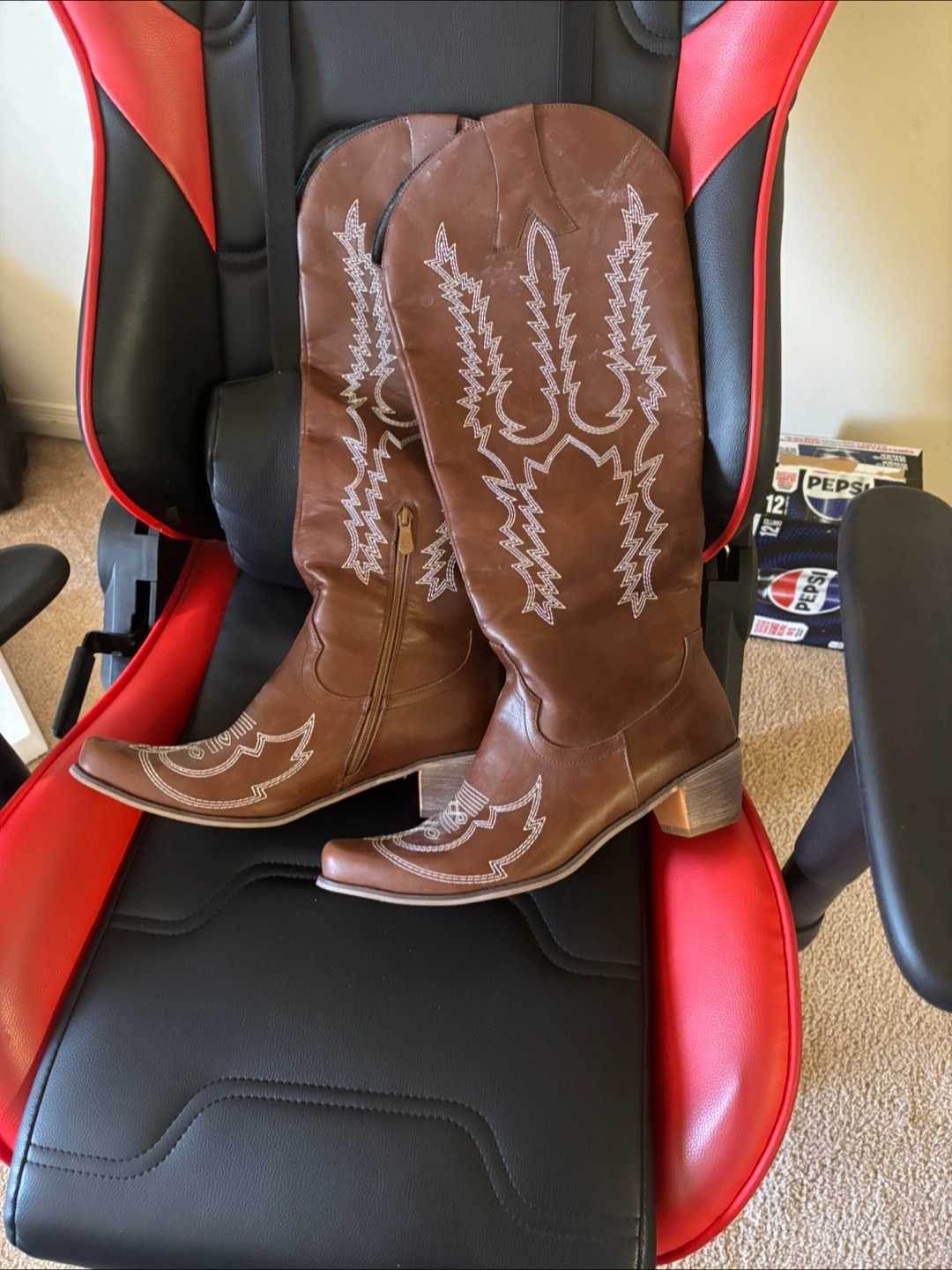 Selling a pair of brown cowboy boots. They're in great shape and ready for a new home!