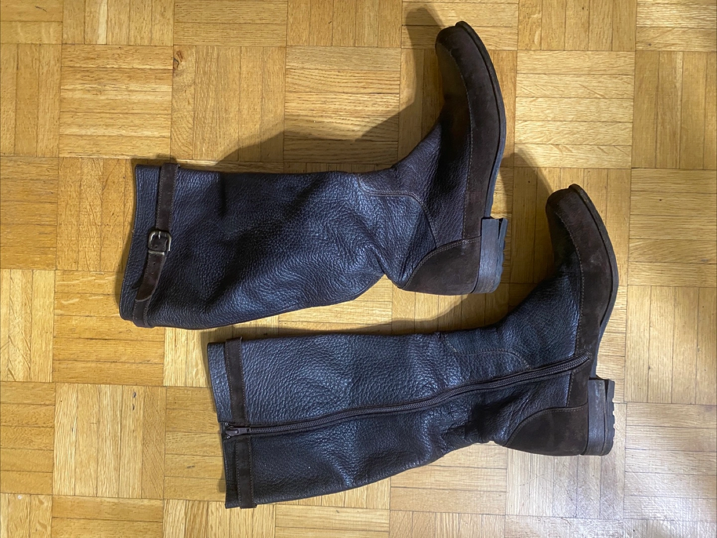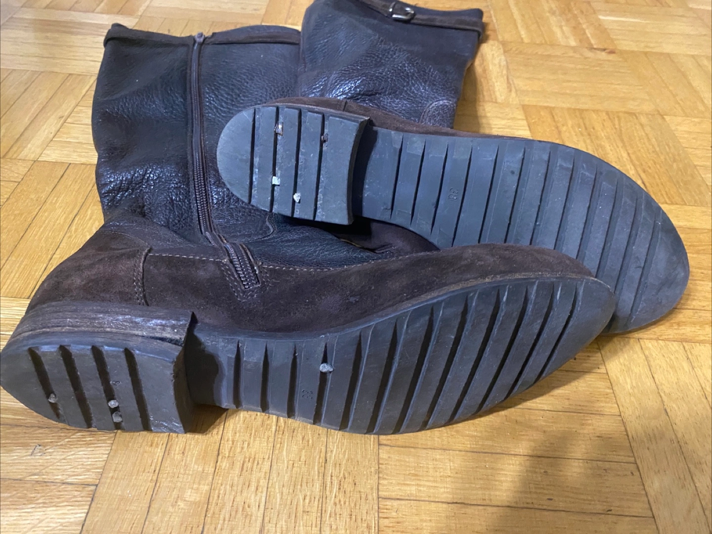 Selling a pair of brown leather boots in size 38. They show some signs of wear, but are still in good condition for everyday use. Please take a look at the photos for details!