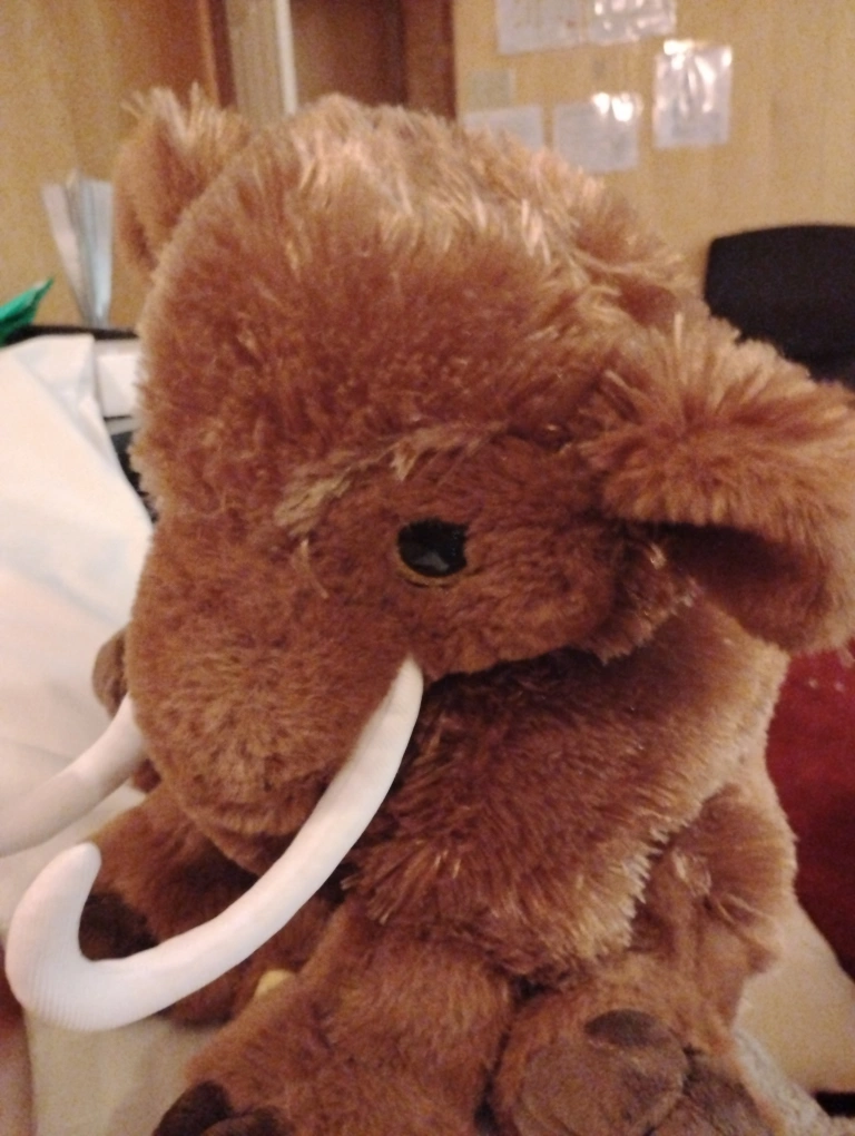 Selling a cute brown mammoth plush toy! It's in great shape and ready for a new home. Perfect for kids or anyone who loves prehistoric creatures pls contact me at 639 470 9870
