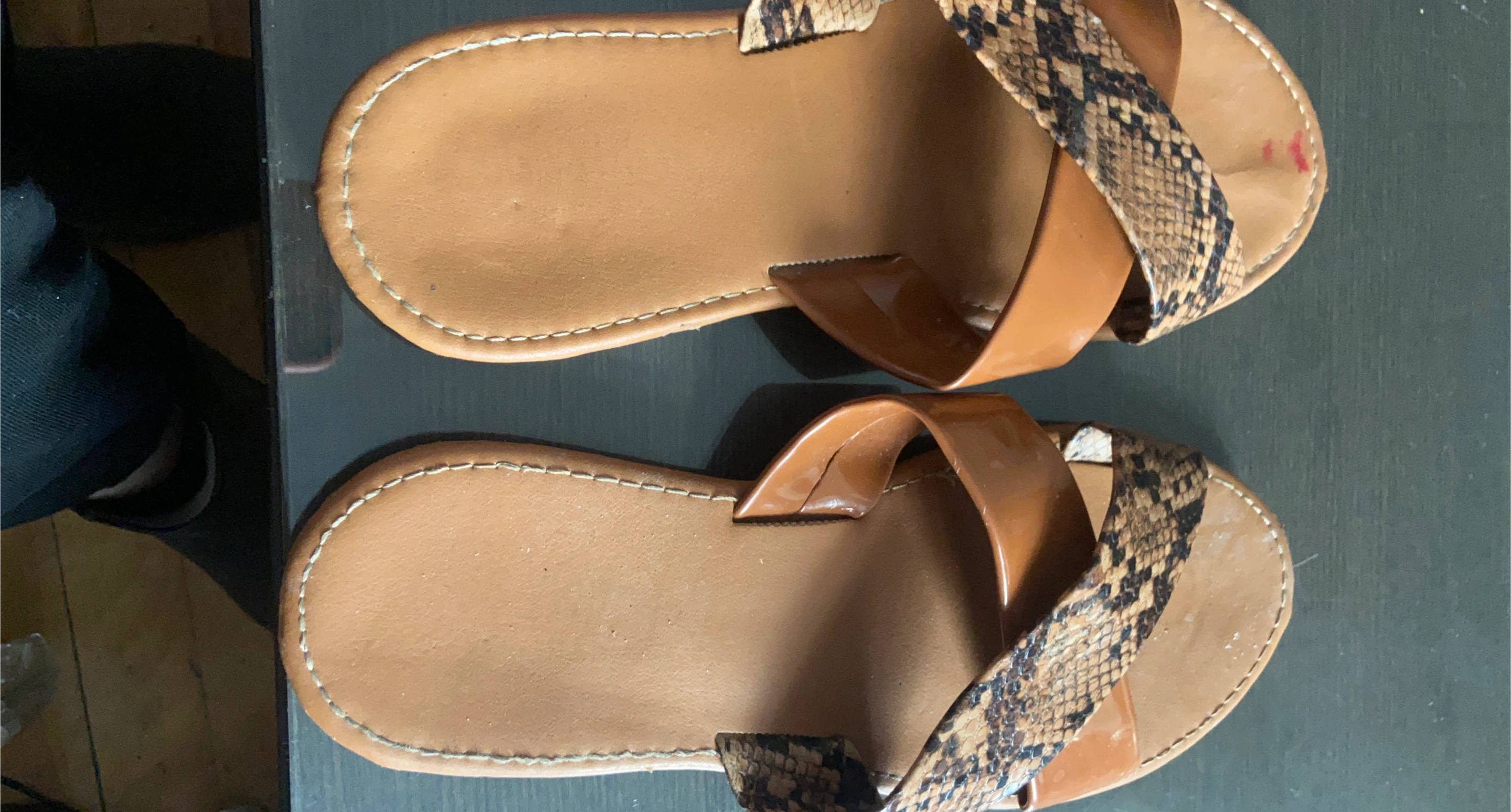 Cute sandals with a brown sole and snakeskin print straps! They're in good condition and ready for a new home. Perfect for adding a touch of style to your summer outfits