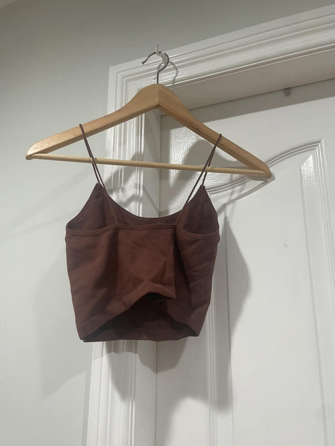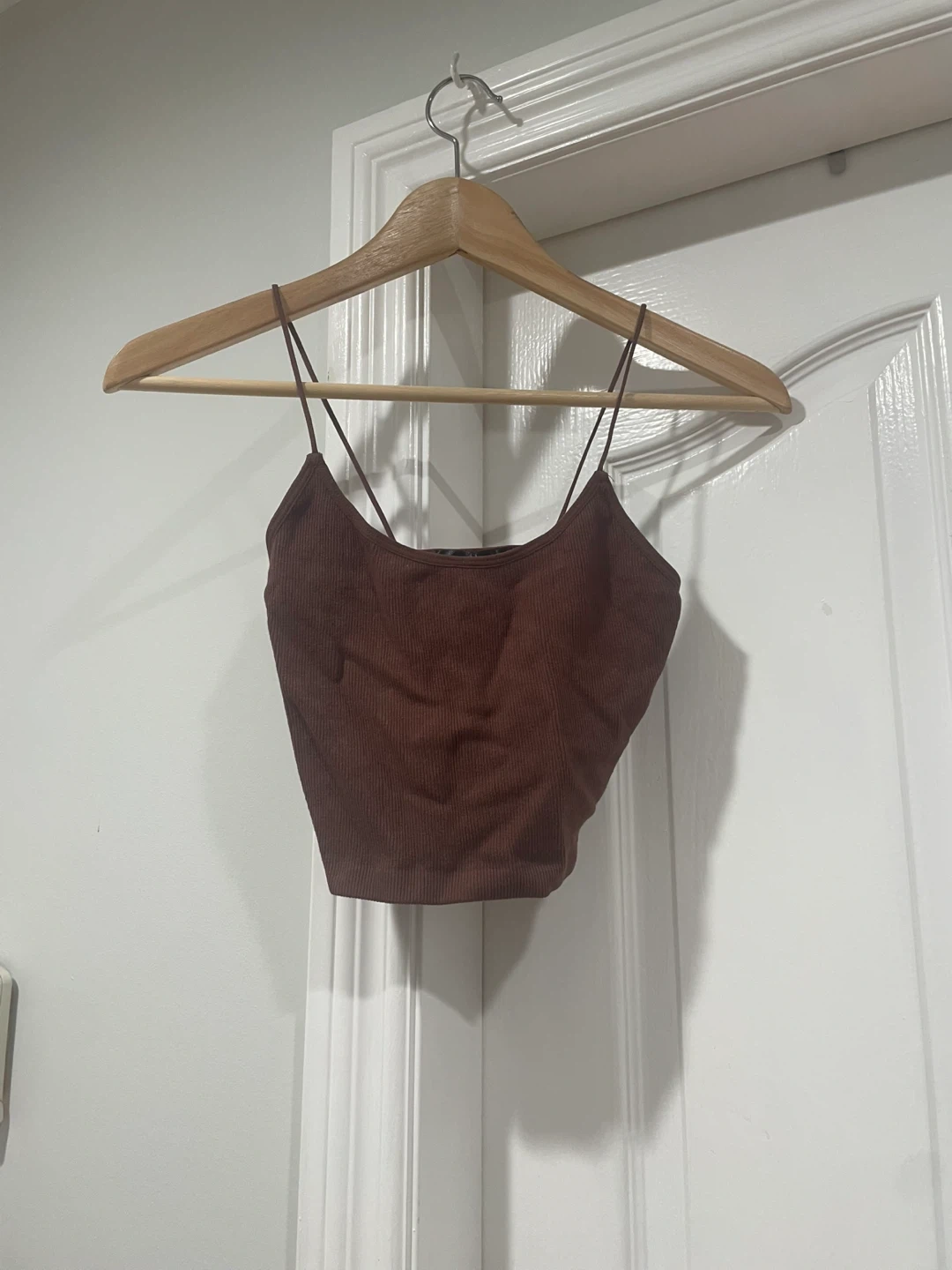 A cute brown spaghetti strap tank top! It's in great condition and ready for a new home. Perfect for layering or wearing on its own during warmer weather