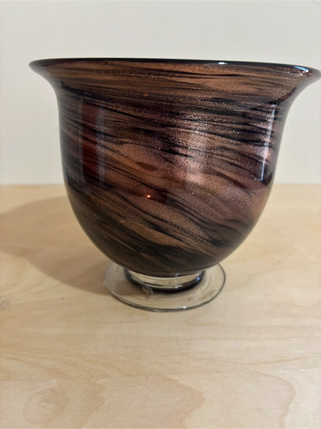 Selling a beautiful brown swirl glass vase! It’s in great condition and would look lovely in any home. The swirl pattern is really eye-catching!