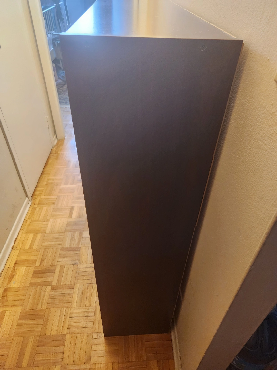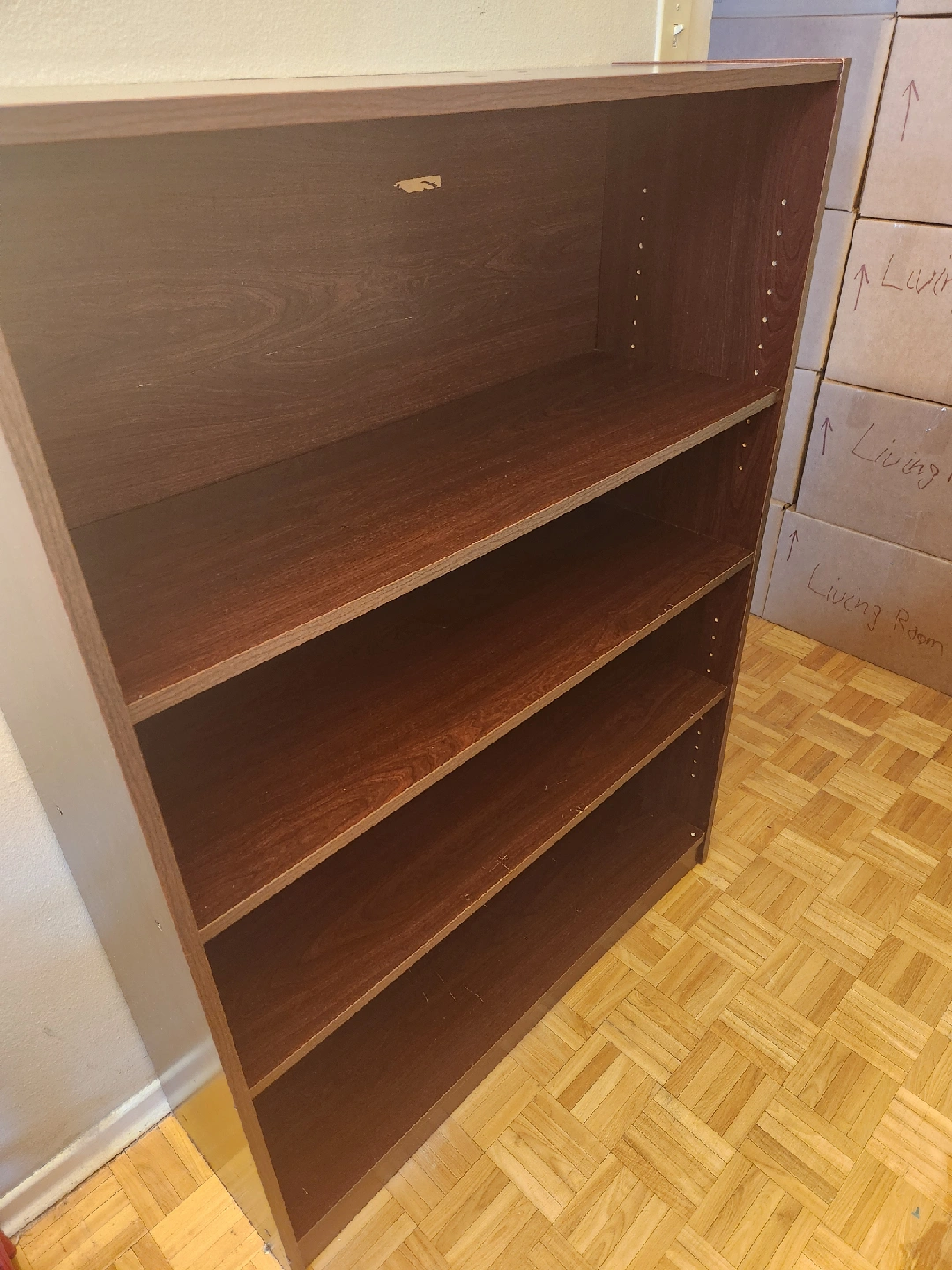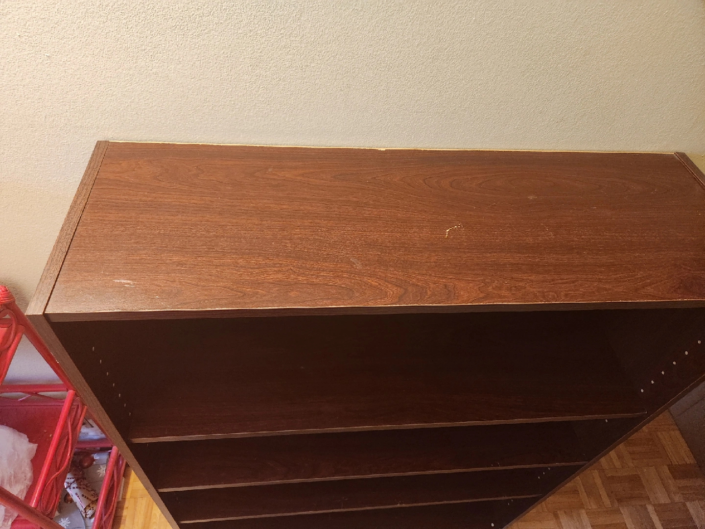 Wooden bookshelf in a dark brown colour. It has some minor signs of wear, as shown in the photos. It's a sturdy piece of furniture, perfect for storing books or displaying items in your living space. Length 90 cm.