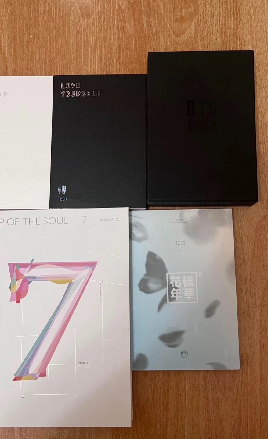 $20 each OR 2 for $35 OR All 7 for $110 Selling a collection of BTS albums, including: - Love Yourself: Her - Love Yourself: Tear - Love Yourself: Answer - Map of the Soul: 7 (Version 01) - Map of the Soul: Persona (Version 02) - The Most Beautiful Moment in Life pt.2 - BTS Young Forever Some albums are missing a photo card or poster — but all in good condition and extras can be included too :)