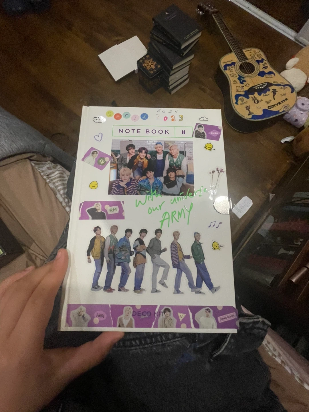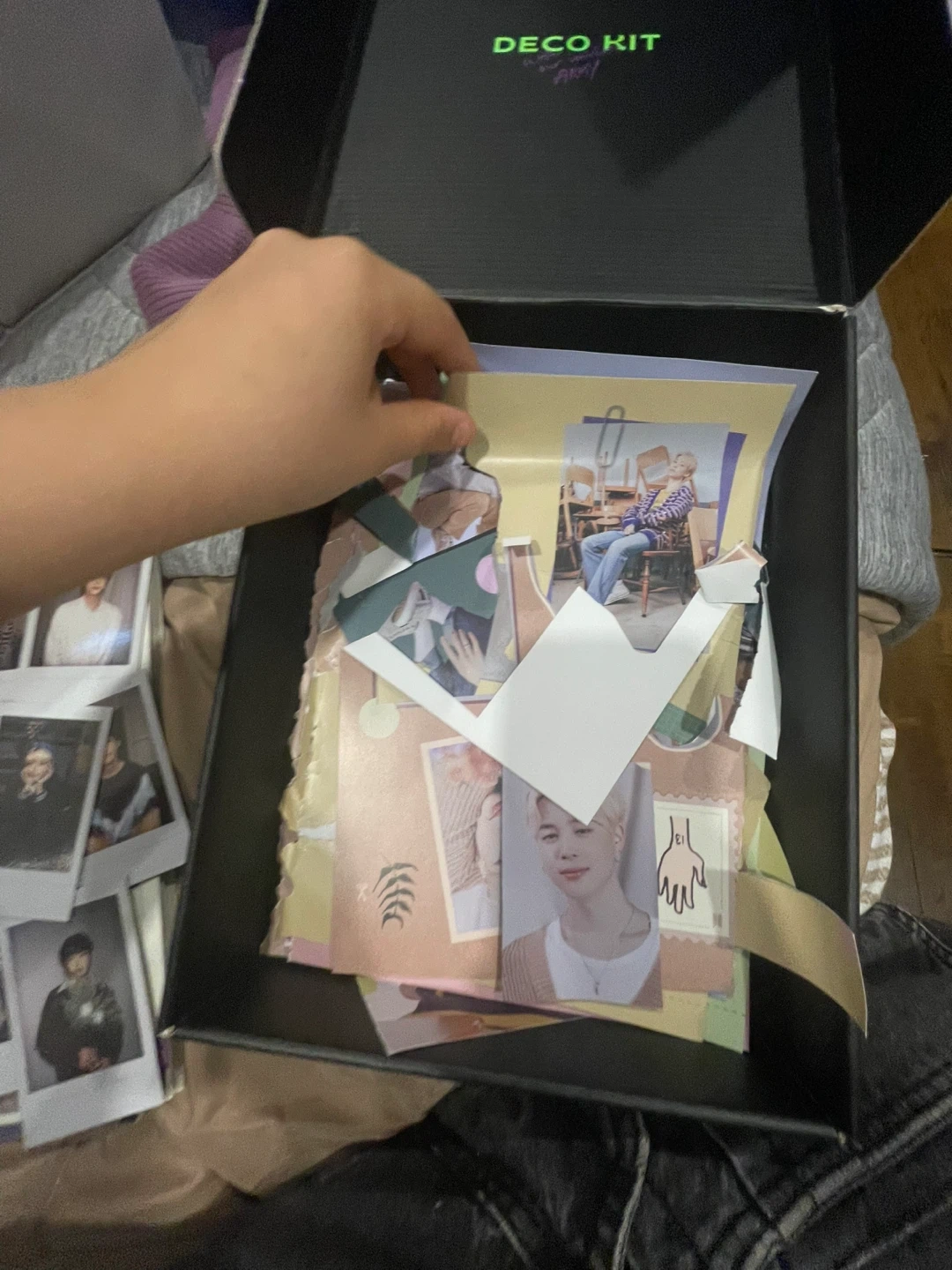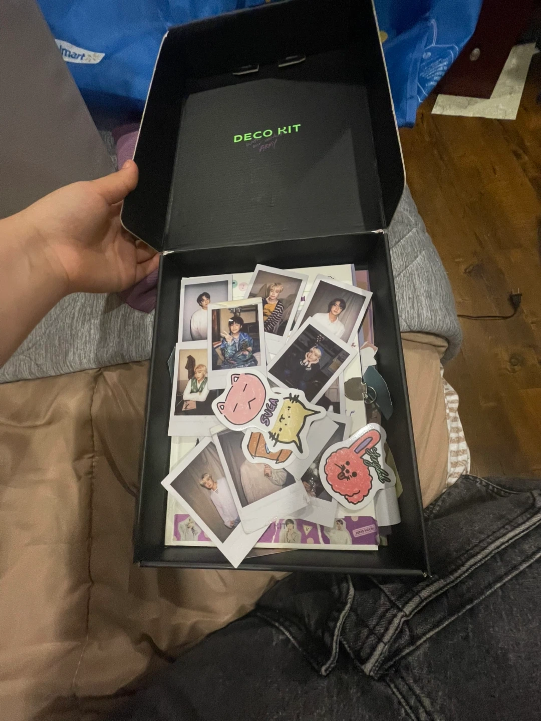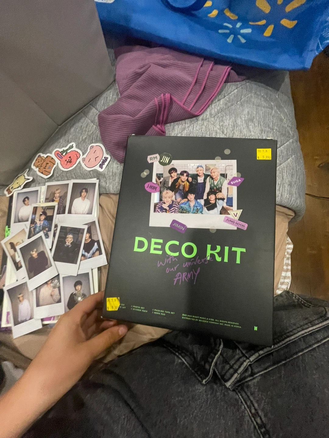 Selling a BTS Deco Kit with Our Universe Army. It comes with a variety of stickers and photos. The kit is in an okay condition and includes the original box! (Decorated)