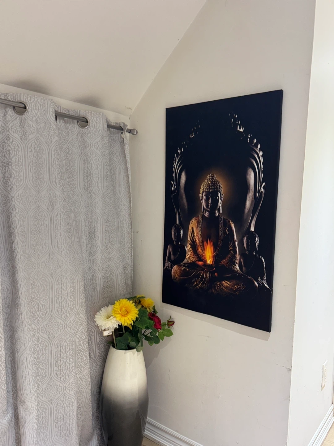 Selling a canvas wall art featuring a Buddha design. It's in great condition and would add a peaceful touch to any room