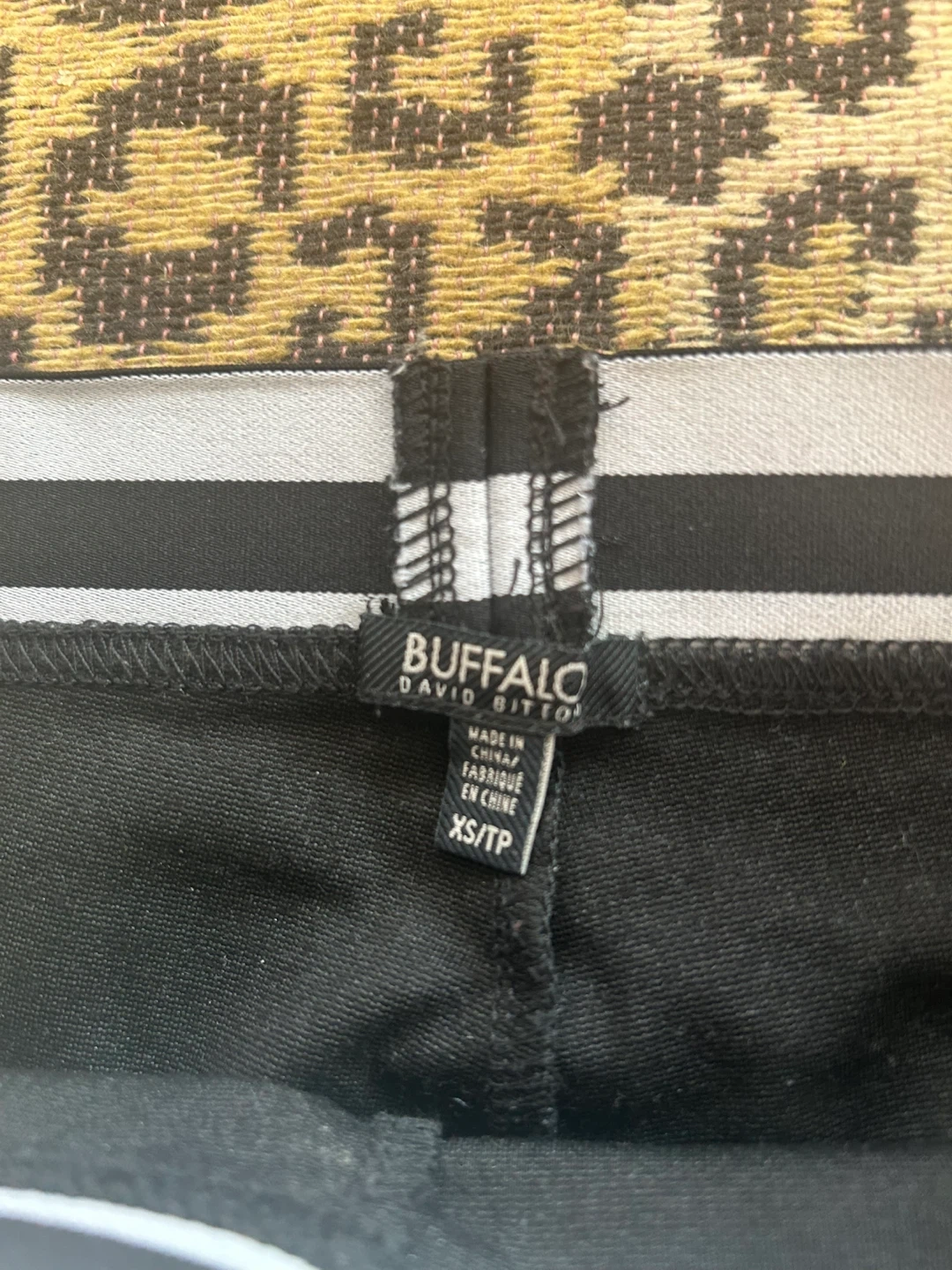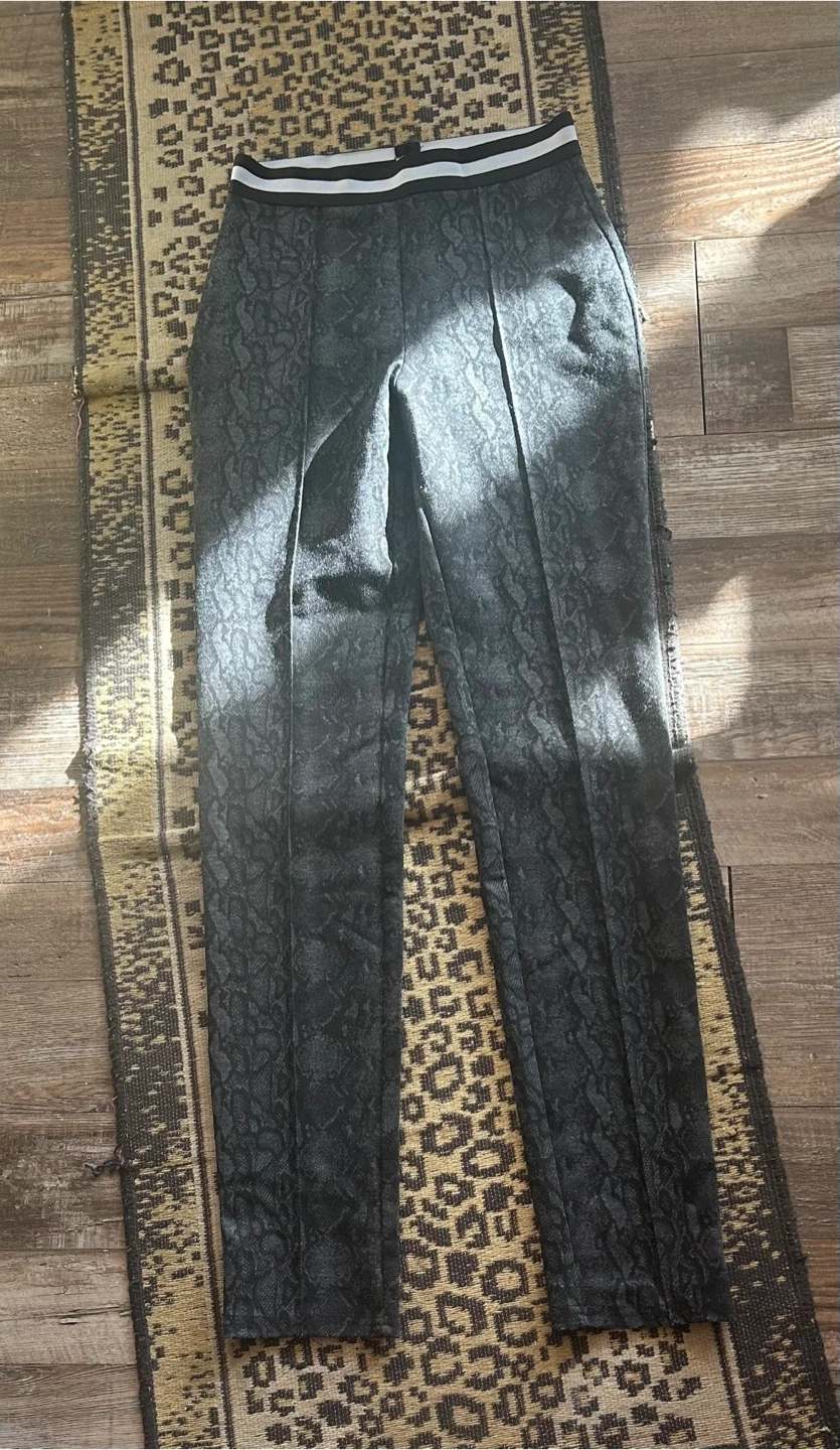 Selling a pair of Buffalo David Bitton pants in size XS. These pants are black with a subtle snakeskin pattern and a comfortable, striped waistband. Great for casual or dressy occasions!