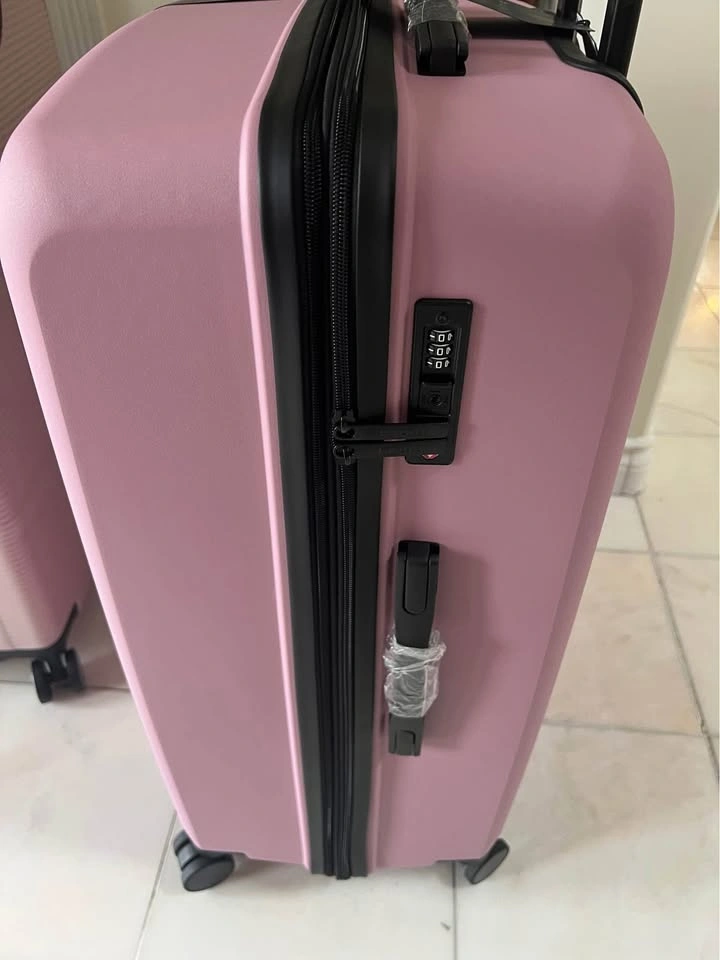 Price is firm Selling a Bugatti Seduction Collection Seoul luggage in a lovely pink colour! It's brand new condition and ready for your next adventure. This luggage is designed to be lightweight and portable, making travel a breeze. The dimensions are perfect for carry-on or checked baggage, depending on your needs. It's made with durable materials to withstand the rigours of travel, and the stylish design will make you stand out from the crowd Size and Weight Carry-on Luggage (H) 21.7 in x (W) 14.6 in x (D) 9.4 + 2 in Weight: 6.3 lbs | 2,9 kg Large Check-In Luggage (H) 30 in x (W) 19.3 in x (D) 12.2 in + 2 in Weight: 9.9 lbs | 4,5 kg Durable impact-resistant polycarbonate shell for long-lasting protection. Expandable zipper system adds 20% more packing space, perfect for travelers who need extra room. Telescopic trolley handle for effortless maneuvering. 360-degree spinner wheels for easy mobility on any surface. Built-in TSA-approved lock for secure and hassle-free travel. Reinforced top and side handles for comfortable lifting and carrying.