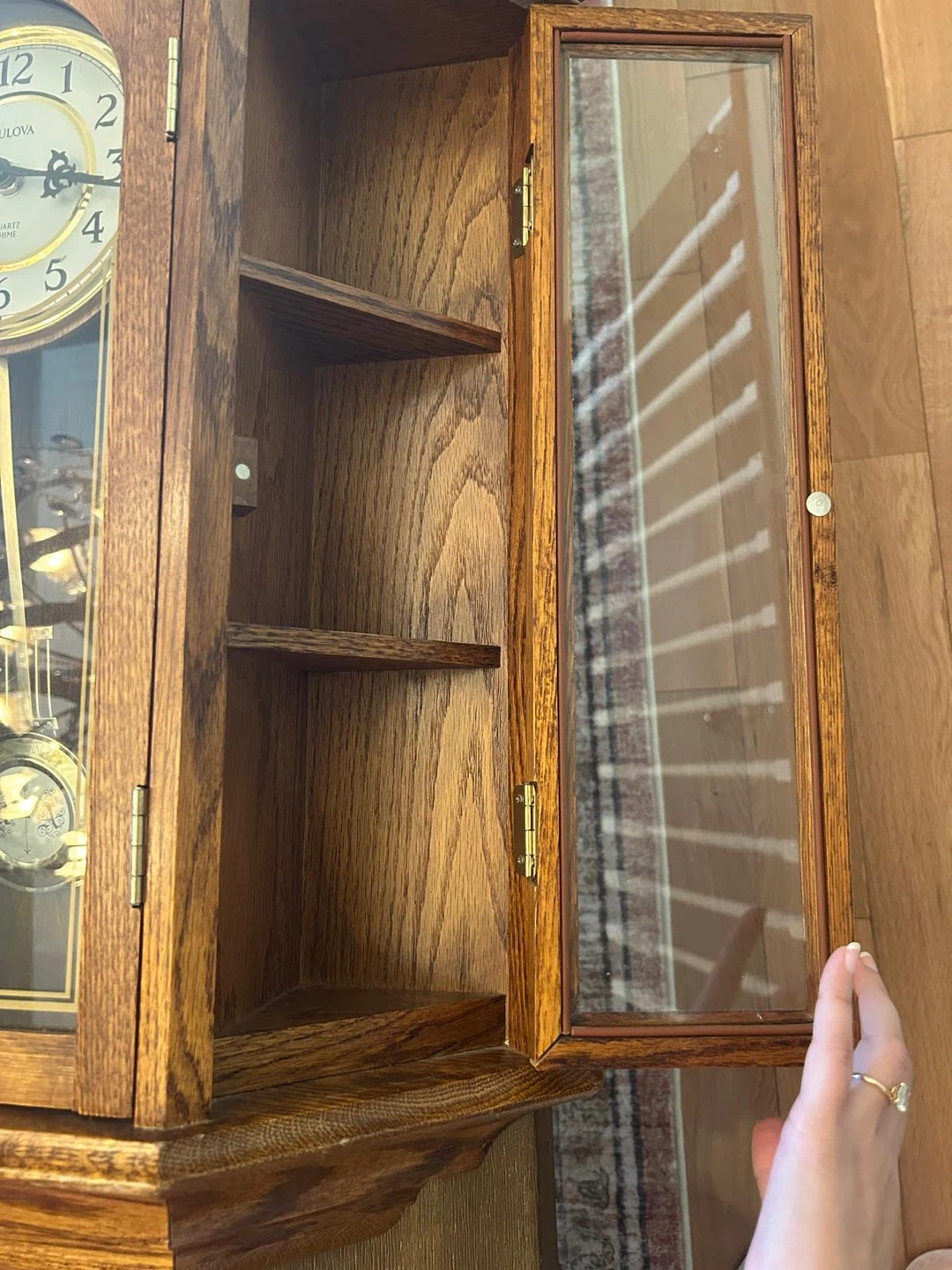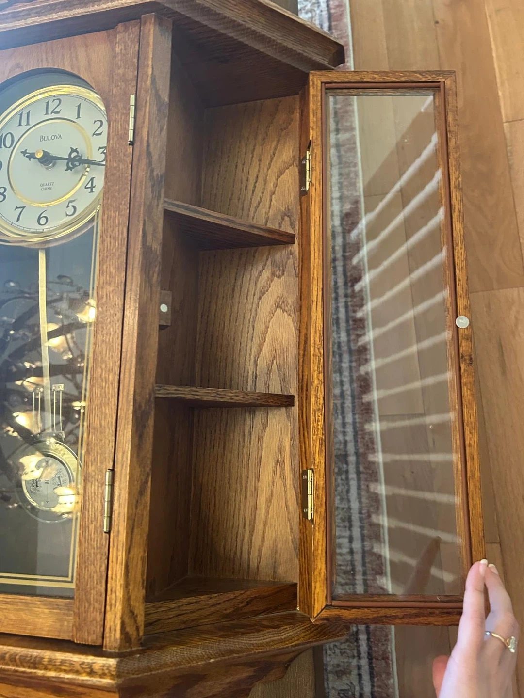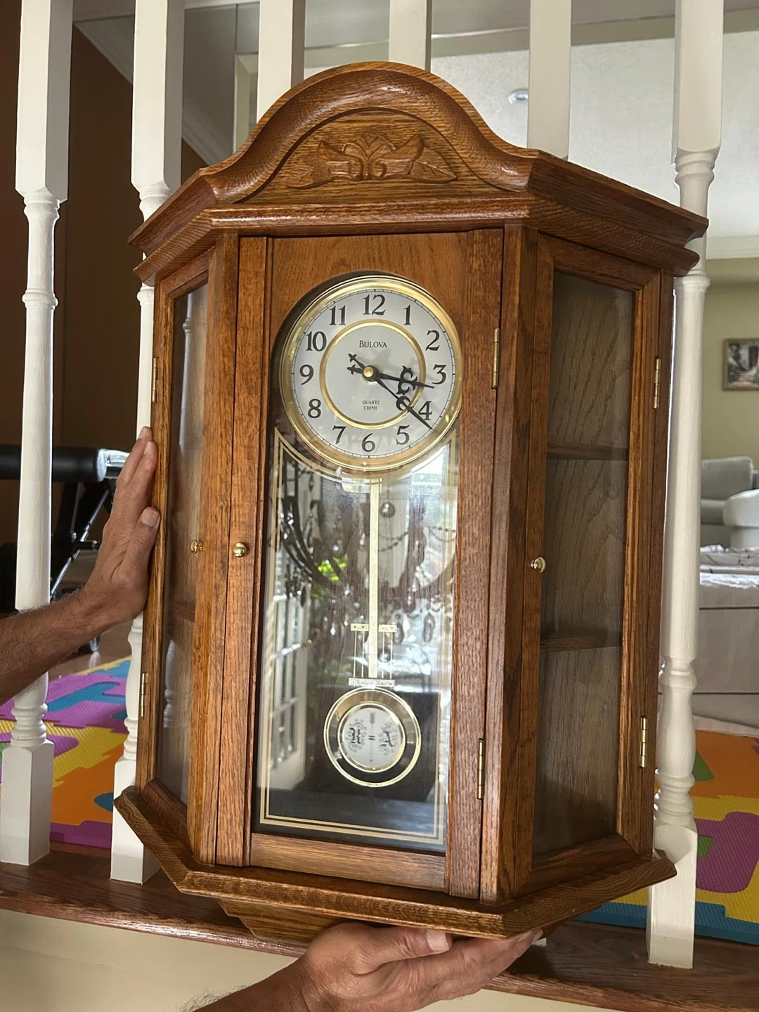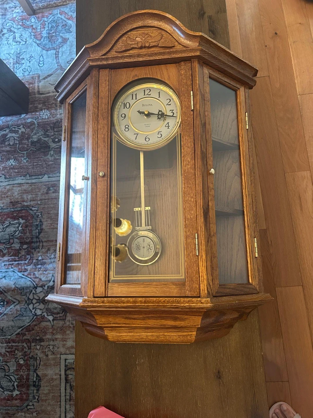 Working condition Selling a beautiful Bulova Quartz Chime wall clock! It's in great condition and would look lovely in any home. The clock features a classic design with a pendulum and glass door. It's a timeless piece!