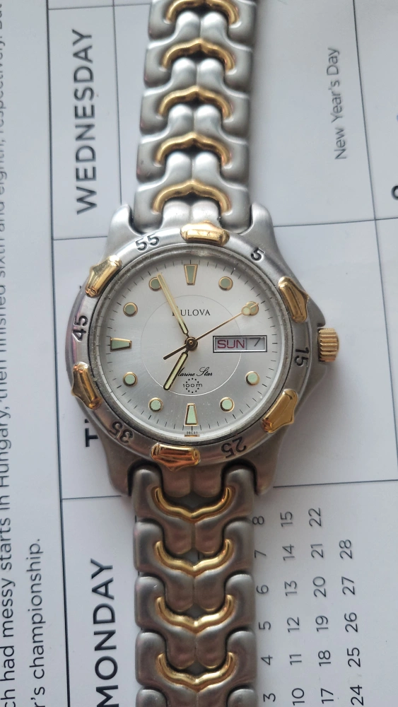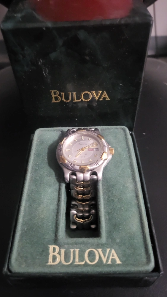 older Bulova quartz watch not working needs a battery... comes with cool old box that is probably worth $20 itself