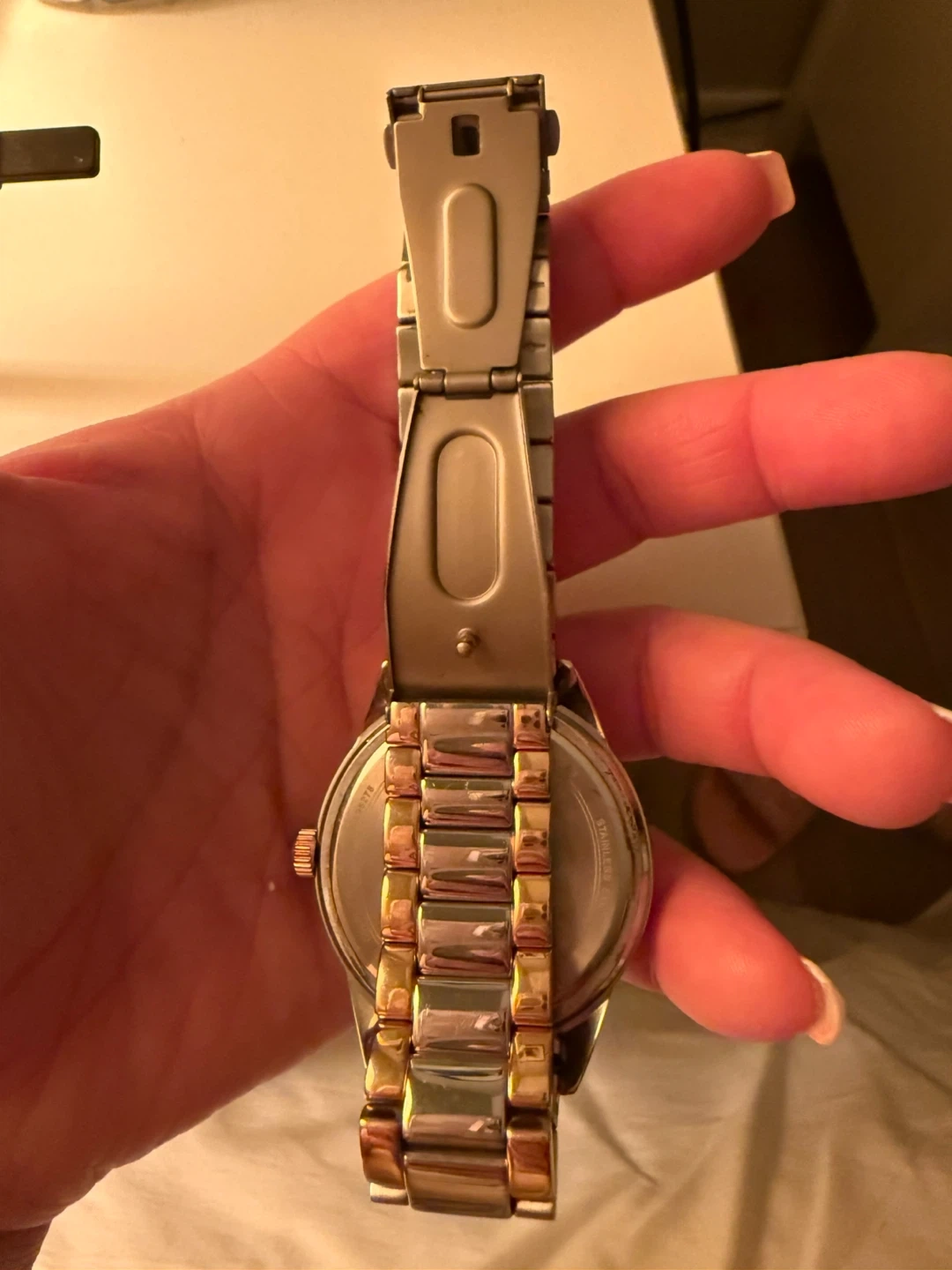 Selling a stylish Bulova ladies' watch in a two-tone design. It features a silver and gold-tone band with a crystal-accented bezel. The watch has a white dial with multiple subdials. It's in good condition and ready to wear!