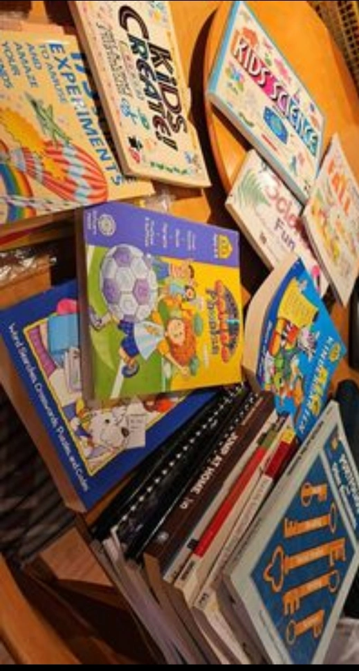 A collection of children's books. The books cover a variety of topics, including science, games, and activities math and reading Great for daycare or homeschooling