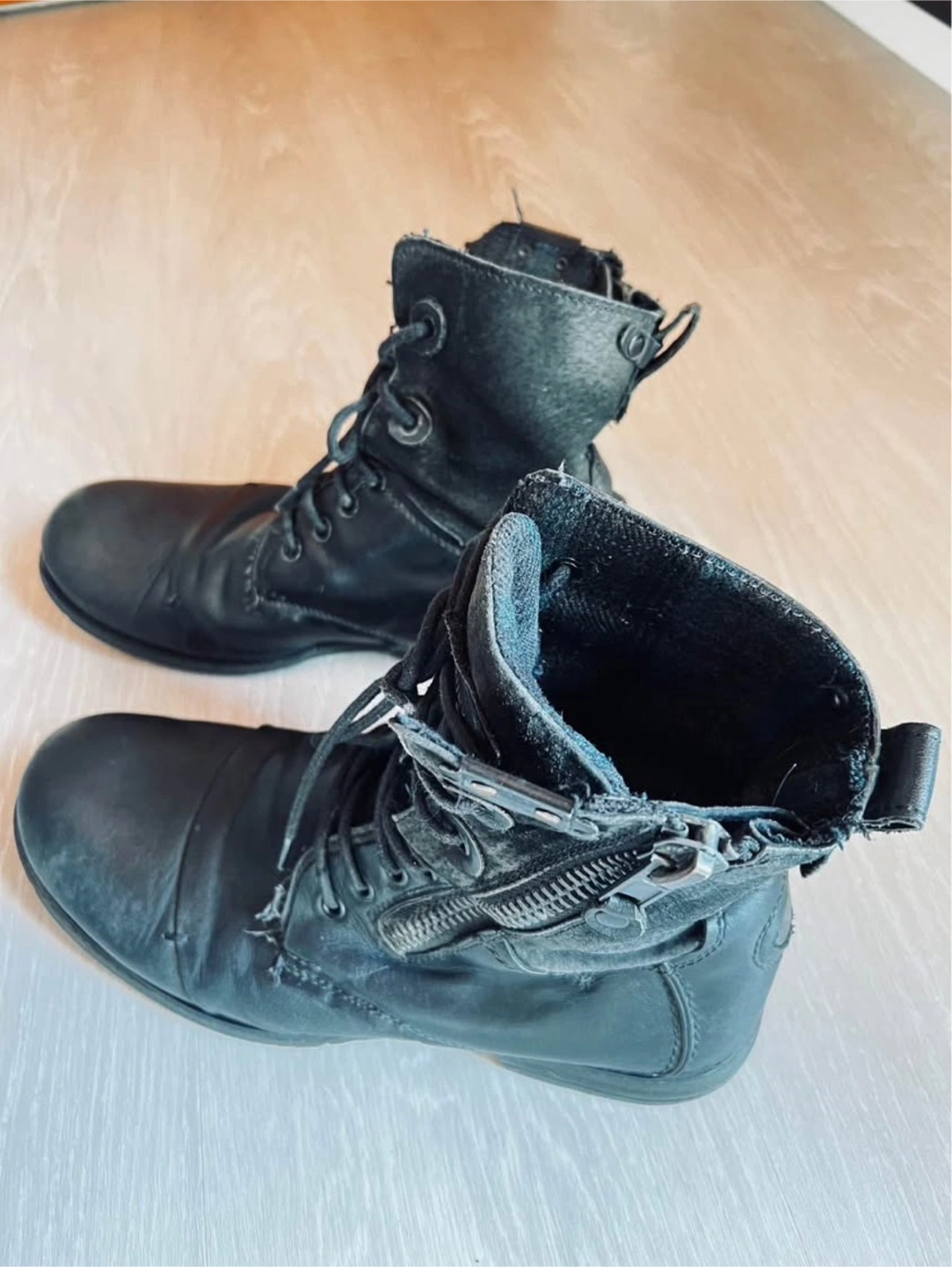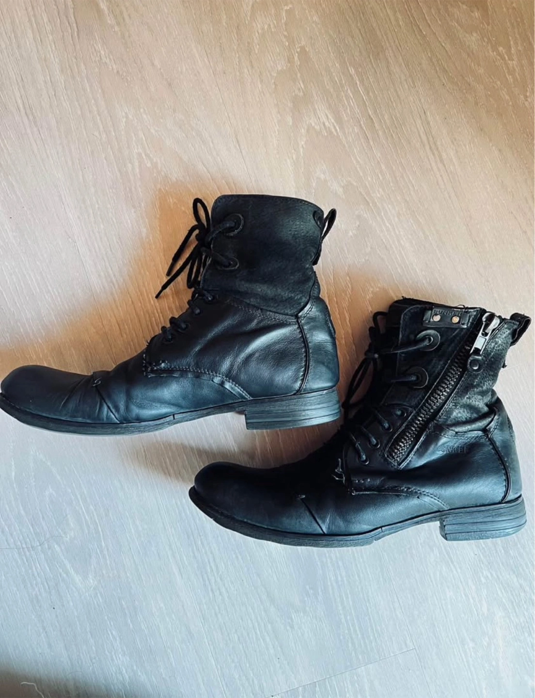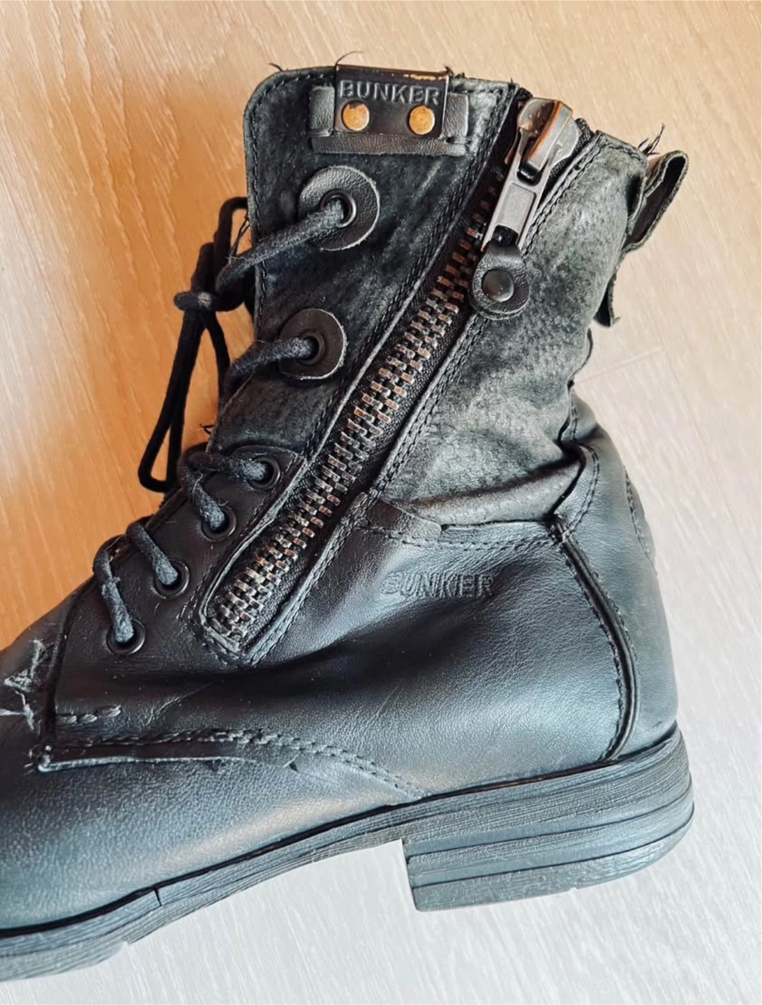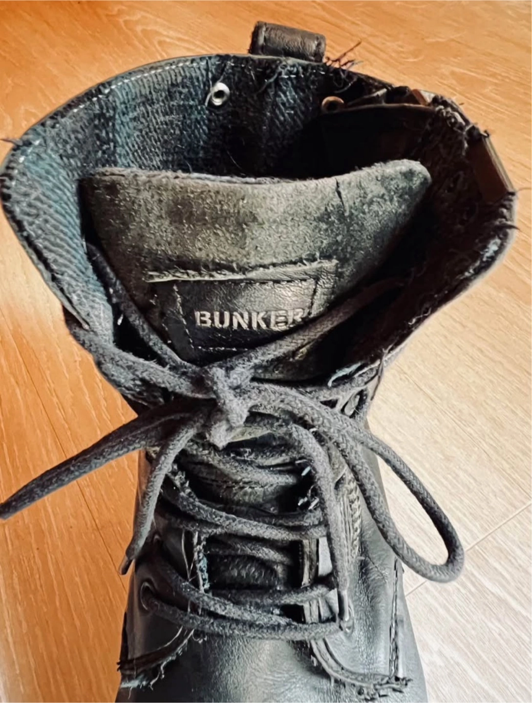 Stylish | Rugged | Rare Find Upgrade your footwear game with these hard-to-find Bunker combat boots – a sleek mix of distressed black leather and durable canvas, built to last with grippy rubber soles. - Men’s Size 8.5 (EUR 42) - Very Good Condition - High-quality materials, military-inspired style, and all-day comfort. Perfect for streetwear lovers, urban explorers, or anyone who appreciates standout footwear.