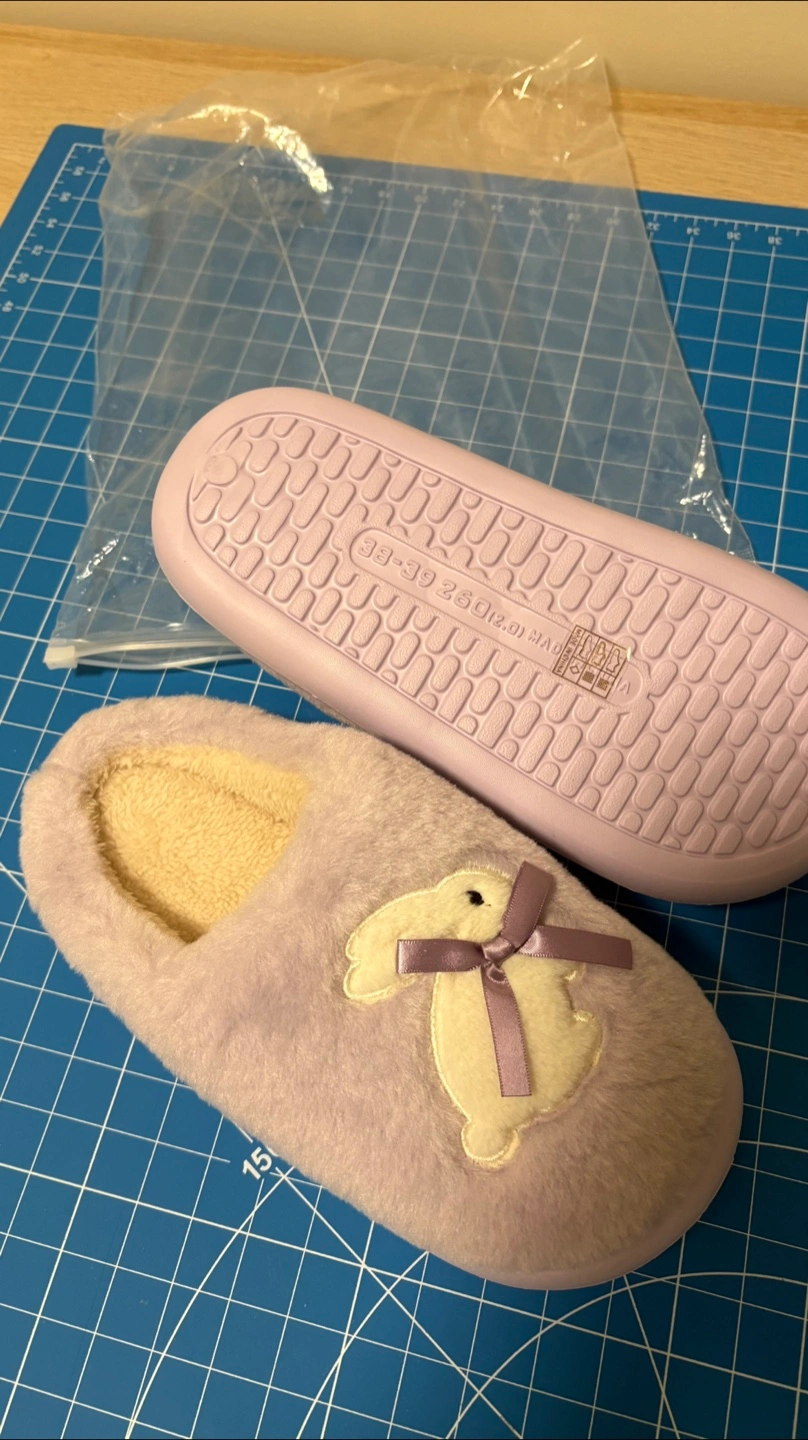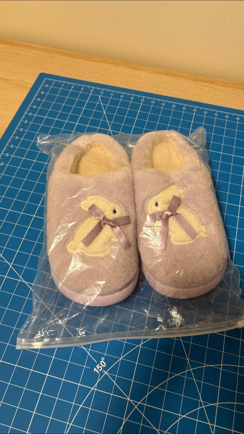 Cute and cozy bunny slippers, perfect for keeping your feet warm! They're a size 38-39, which is about a US size 7.5-8.5. These slippers feature a sweet bunny design and are in great condition!