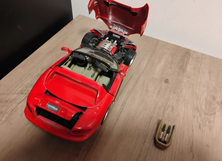 Burago 1992 Dodge Viper RT 10 with stand 1/18 scale Made in Italy, 1/18 Scale model Measures approximately 10 inches long 4.25 inches wide 3.5 inches tall (with stand attached) Shows Wear Passenger seat is broken, but comes with the car. Someone with a steady hand may be able to glue it back together, or use the car for parts and customizations Asking $20 Meet-Ups at Cloverdale Mall (Etobicoke-[Toronto], ON)- Dundas/427