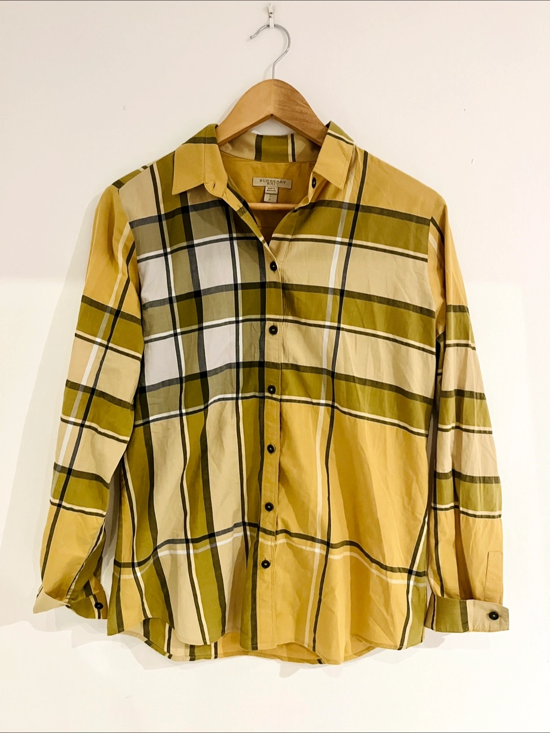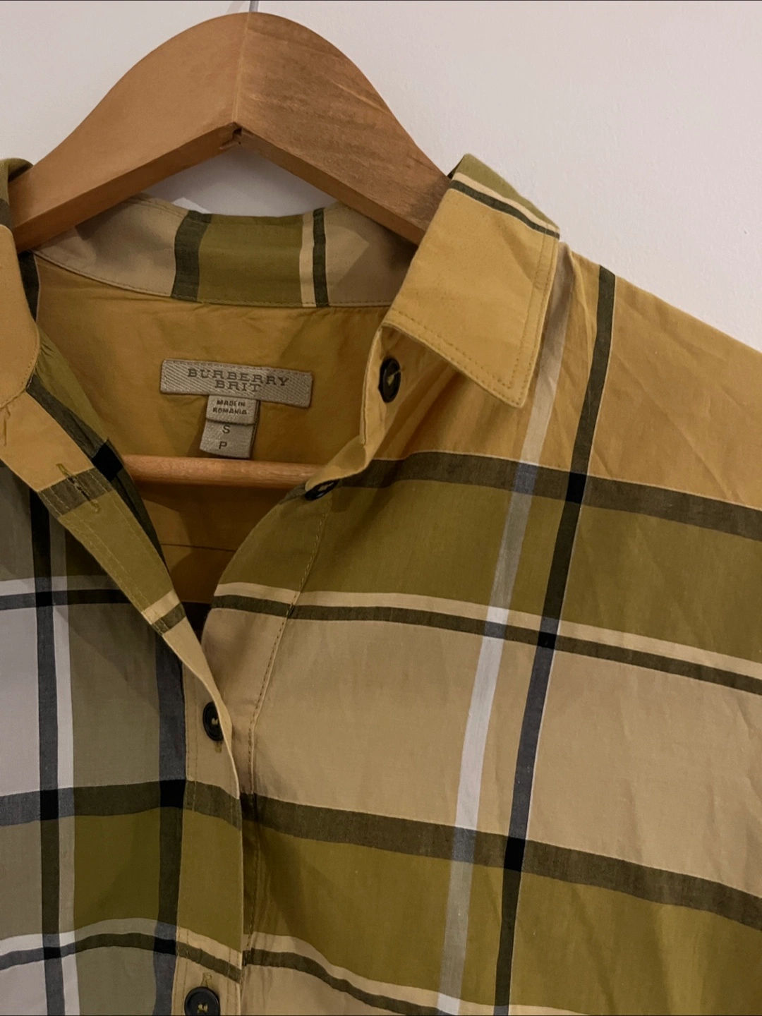 (Open to offers or trades, shoot me a message!) Yellow Burberry Brit plaid shirt in perfect condition. Lovely material and a great piece for fall! Size small.