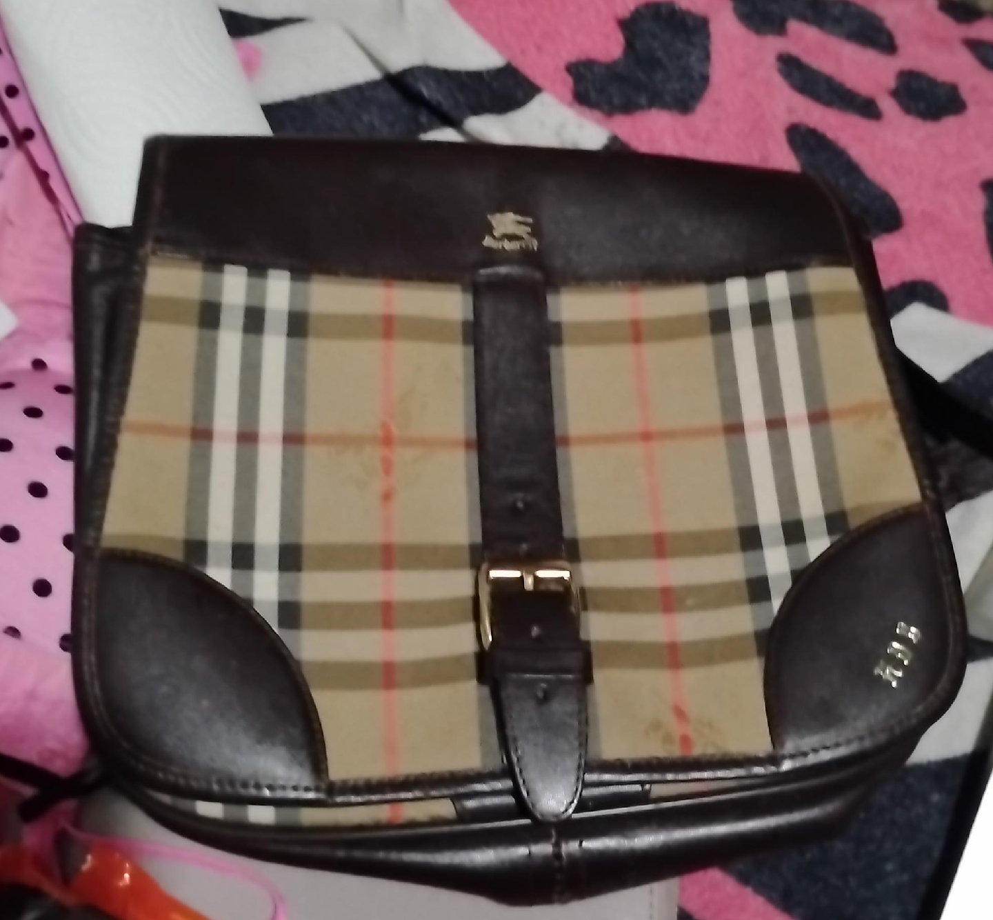 Selling a Burberry crossbody bag with the classic Burberry plaid pattern! It has dark brown leather trim and a gold buckle. It's in good condition and ready for a new home!