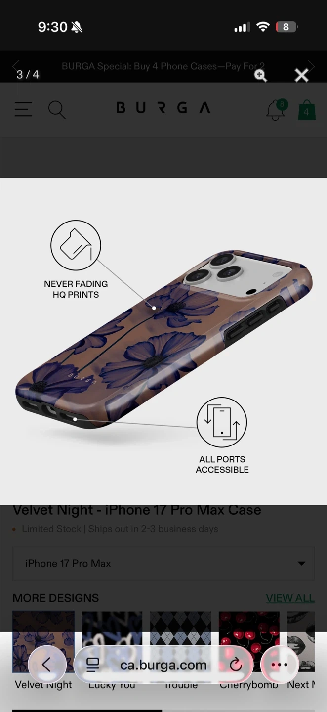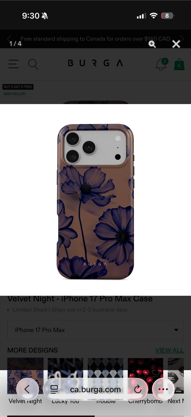 BURGA Velvet Night iPhone 17 Pro Max case with a beautiful floral design! It has NEW! I ordered wrong size :( Pickup north van or burrard st