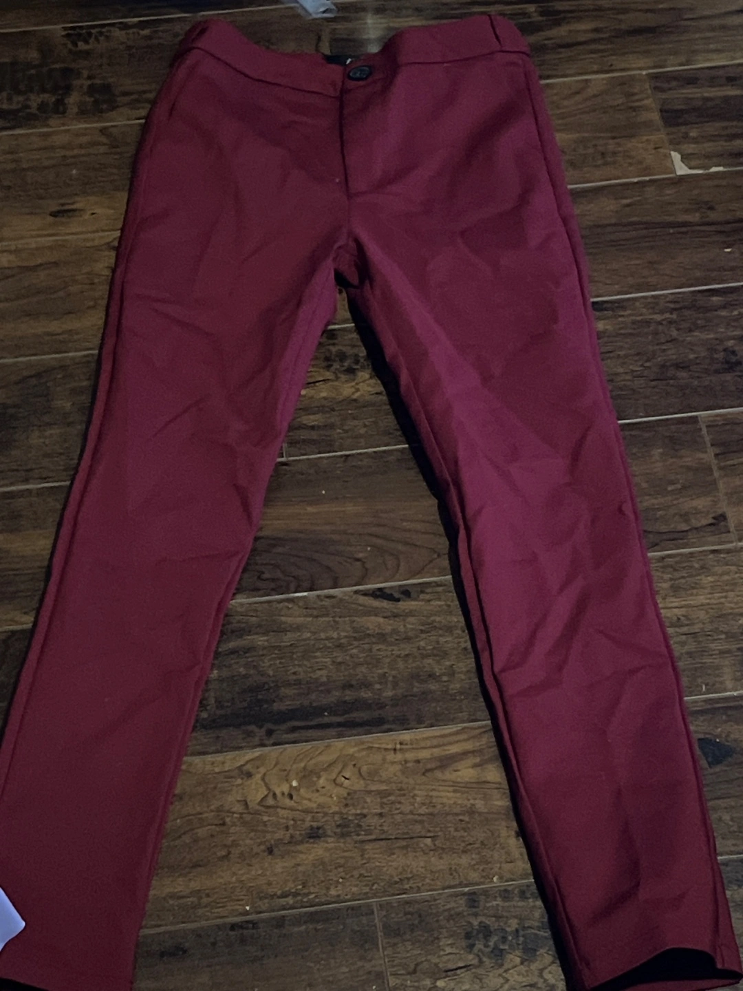 Selling a pair of dress pants in a burgundy colour. These pants are great for work or a night out. They are in good condition and ready for a new home!