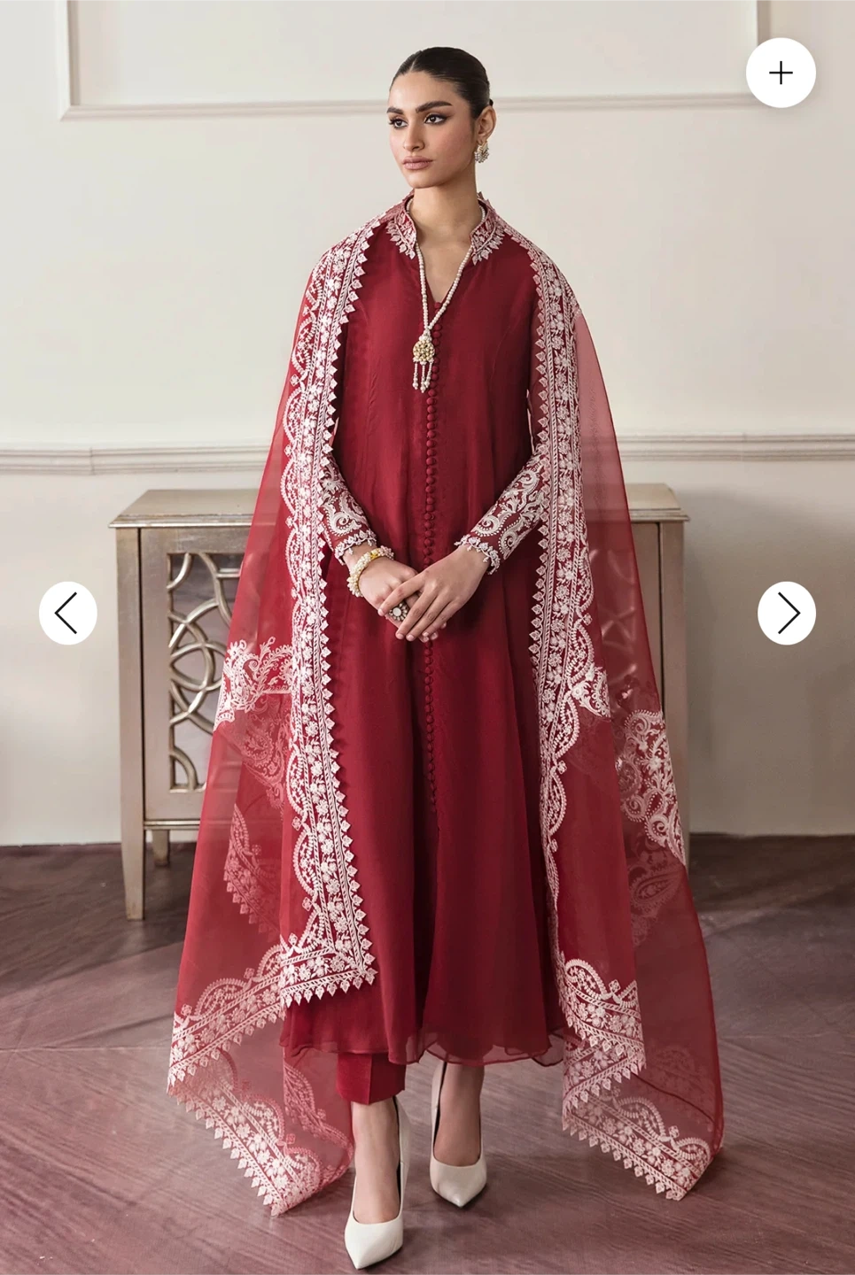 Beautiful burgundy dress with intricate white embroidery on the dupatta. Perfect for special occasions or adding a touch of elegance to your wardrobe For further details please message me