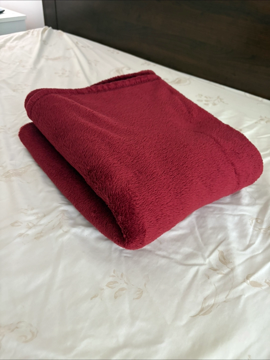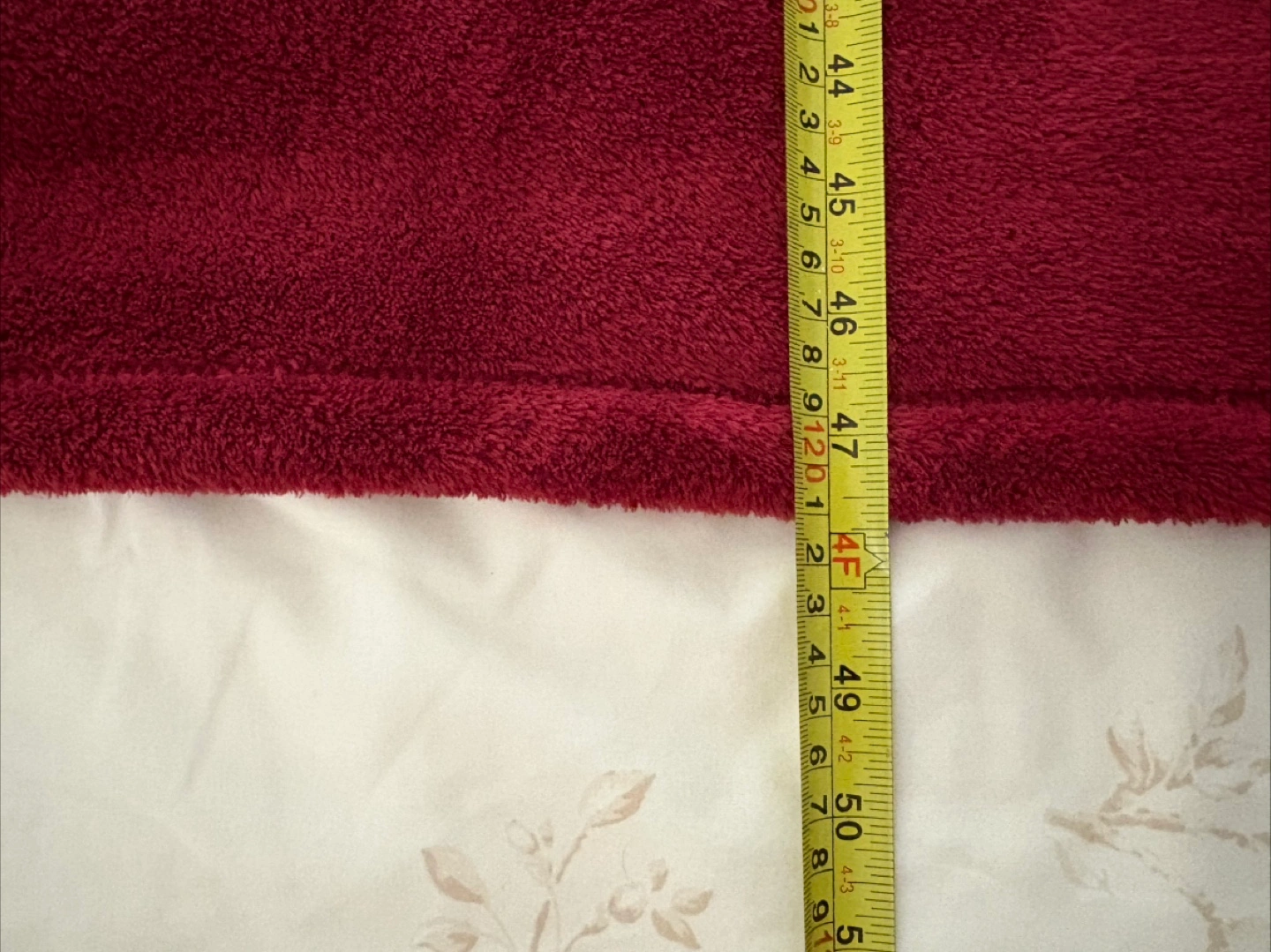 Snuggle up with this super soft burgundy fleece throw blanket! It's in great condition and measures approximately 46 inches by 60 inches. Perfect for adding a touch of warmth and colour to your living space