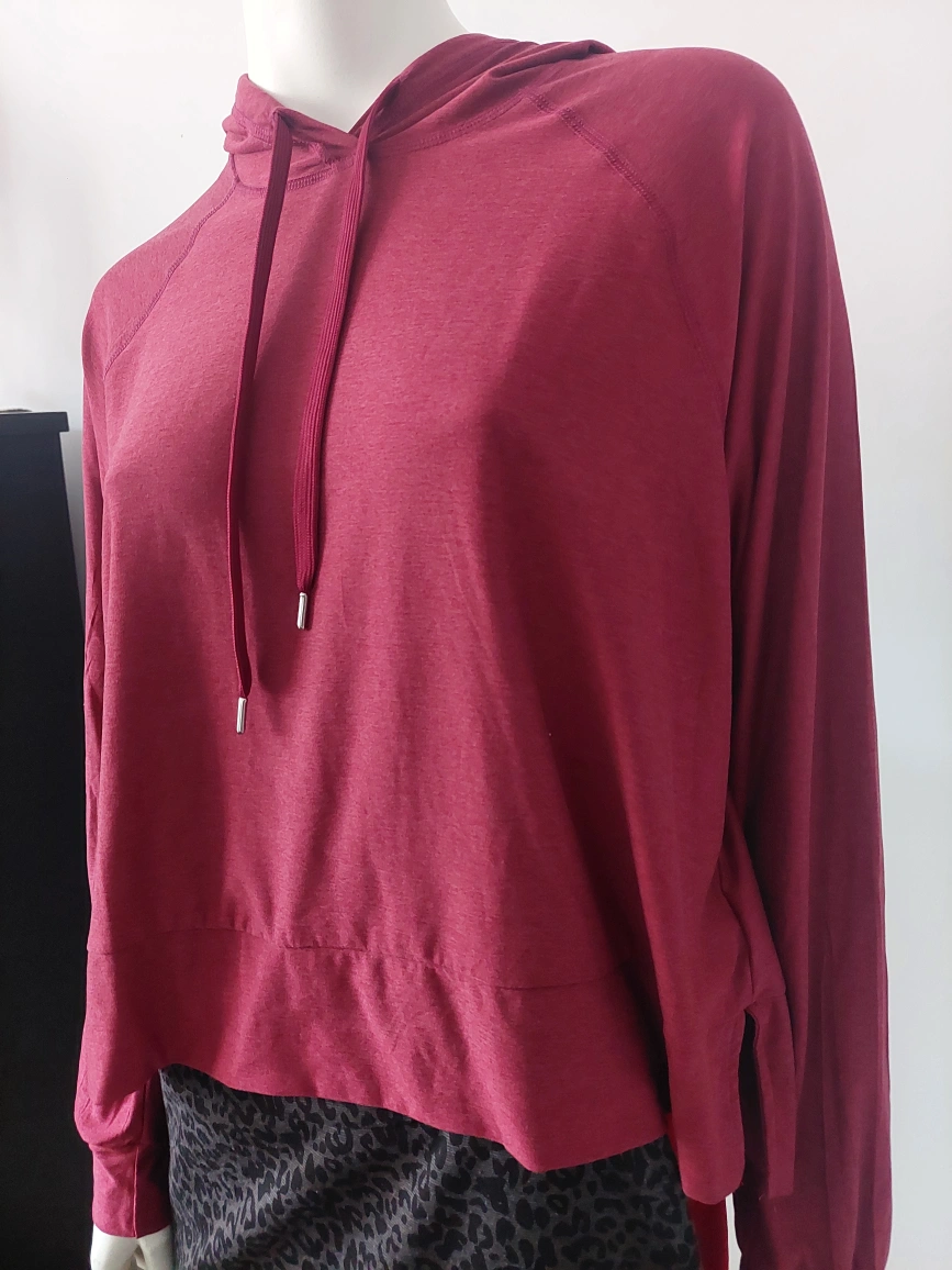 A comfy burgundy long sleeve cropped hoodie! Perfect for layering or wearing on its own. It's in great condition. Please take a look at my other items. Discount applies on multiple purchases.