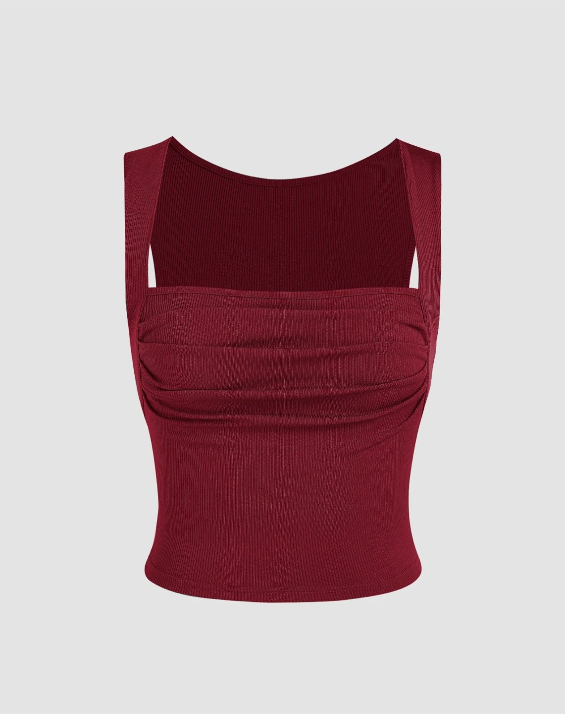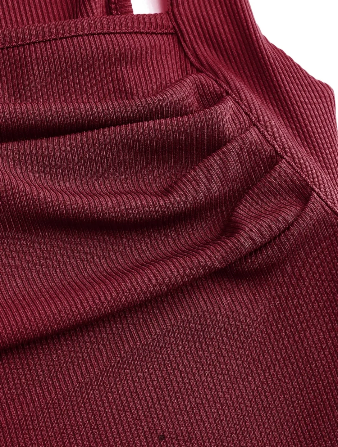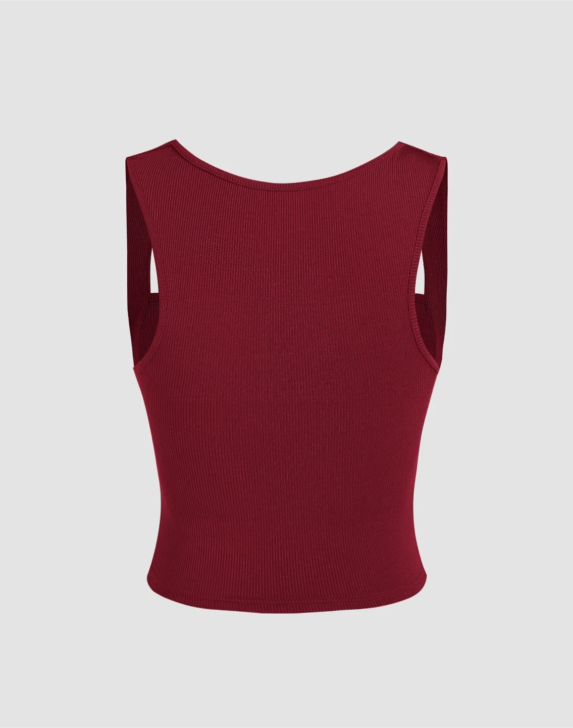 A burgundy ribbed tank top, perfect for layering or wearing on its own! The material is soft and stretchy, making it super comfy for everyday wear. It's in great condition and ready for a new home