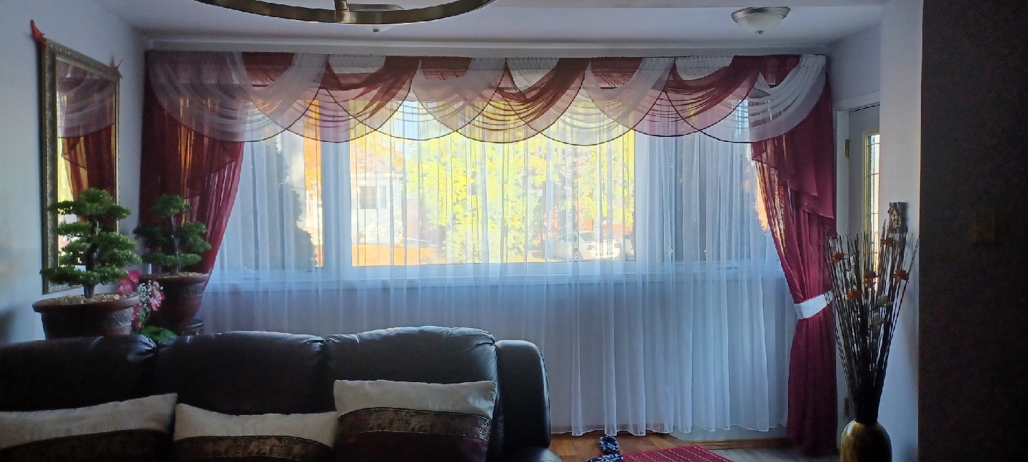 Add a touch of elegance to your home with this lovely burgundy and white window curtain set! The set includes sheer white curtains and a decorative burgundy valance. Perfect for adding privacy and style to any room comes with all hardware... PLEASE CALL NOT TEXT.... 519 729-5862 415 Victoria st south kitchener