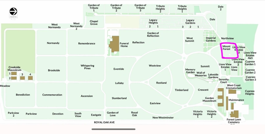 PLOT DETAILS - Single depth, unlined burial plot in the Mount Forest section, Lot 59 - You will receive the title and full interment rights for one standard plot that can accommodate * one casket plus one urn OR * two urns PAYMENT DETAILS - Buyer pays transfer charges, GST and associated fees, if any - Payment via Certified Cheque - Transaction will take place at Forest Lawn Memorial Park 3789 Royal Oak Avenue, Burnaby BC Please contact to discuss reasonable offers.