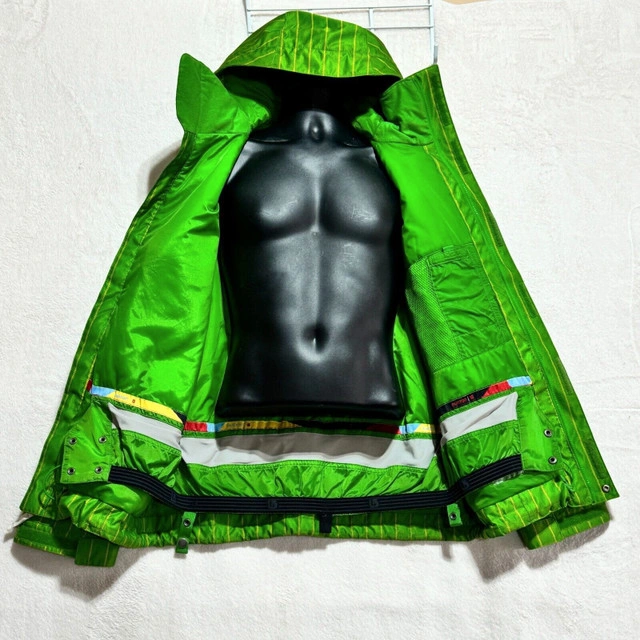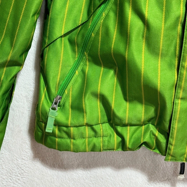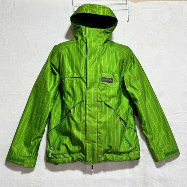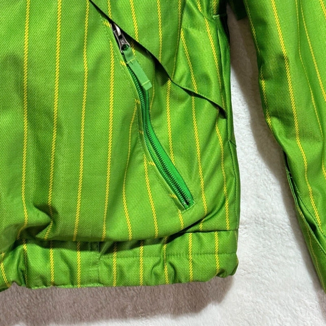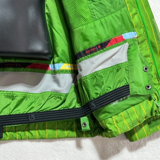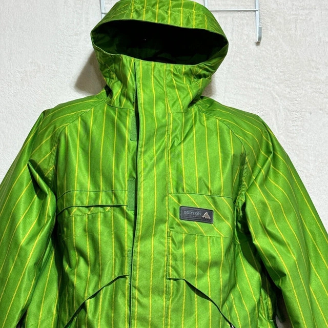 In good pre-owned condition, washed & cleaned. Please see photos for the measurements as well as the condition of any flaws or stains if any, with normal wear from use. Colors may not be accurate on the photos that are zoomed in, the camera may have adjusted due to lighting. You’ll receive all what's in the photo. Stay warm and stylish on the slopes with this Burton DryRide Hooded Jacket. Crafted from waterproof polyester material, this green striped ski jacket features insulated lining for added warmth. The full zip closure, stand-up collar, and hood provide extra protection against the elements, while the zipped pockets offer secure storage for your essentials. Perfect for skiing or hiking in the winter, fall, or spring seasons, this jacket from Burton's DryRide collection combines function and fashion effortlessly. Let me know if you're interested!