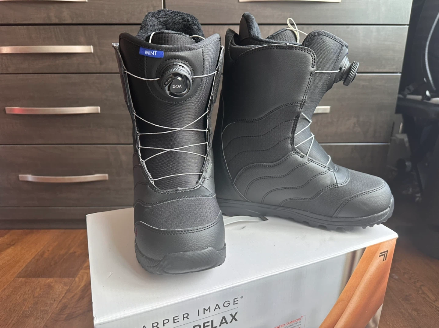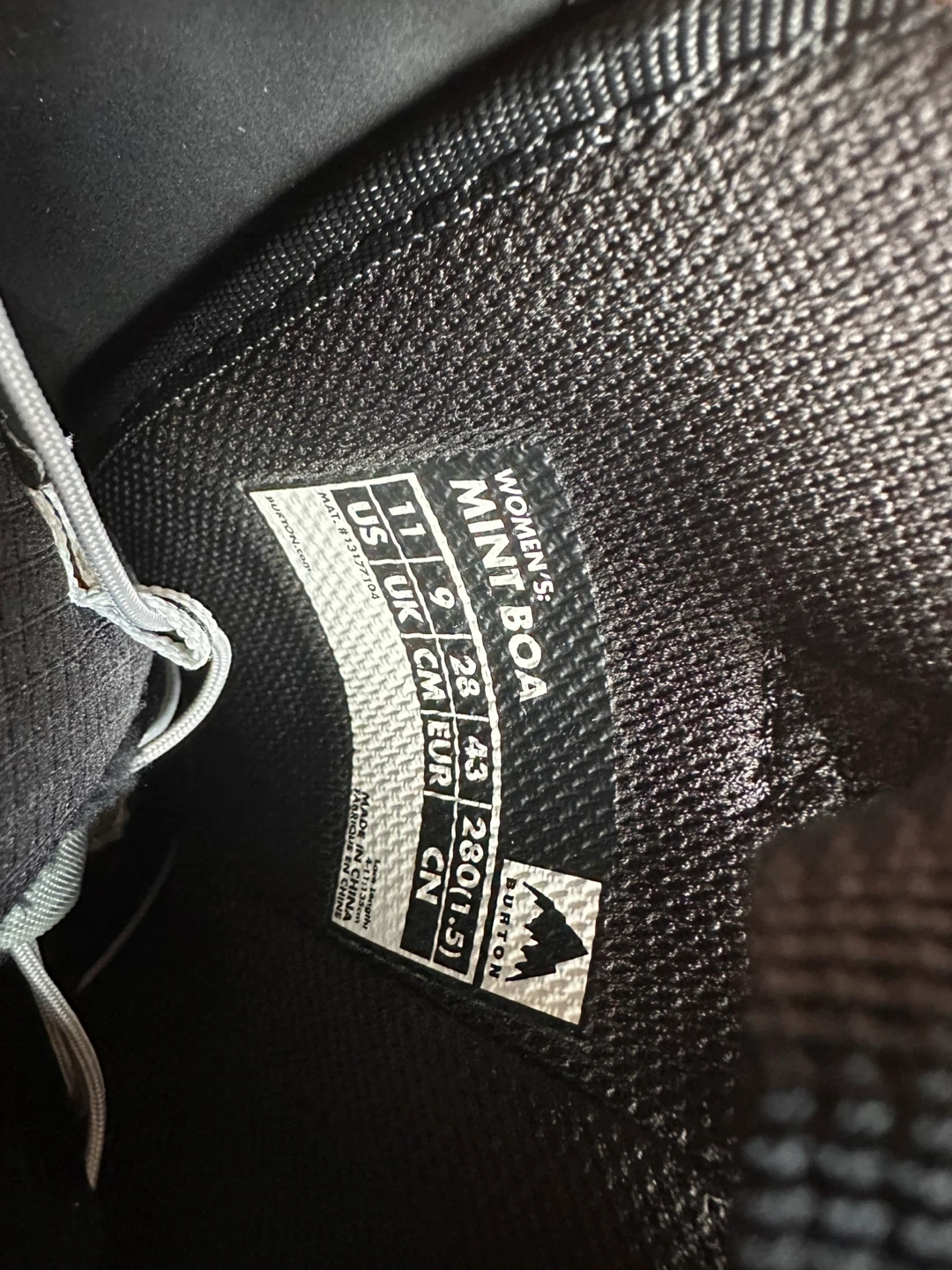 Selling a pair of Burton Mint Boa women's snowboard boots in US size 11. They're in great shape and ready for the slopes! The Boa system makes getting in and out super easy and provides a snug, comfortable fit.