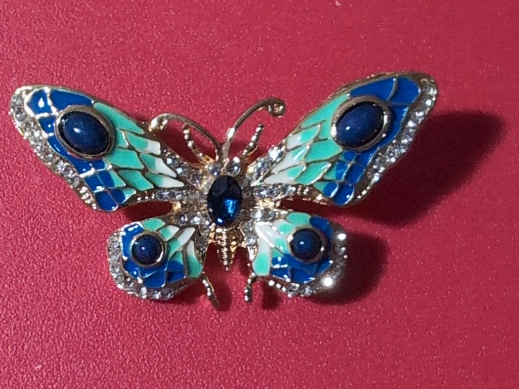 Beautiful butterfly brooch featuring blue and green enamel accents. The brooch is in great condition and ready to add a touch of elegance to any outfit