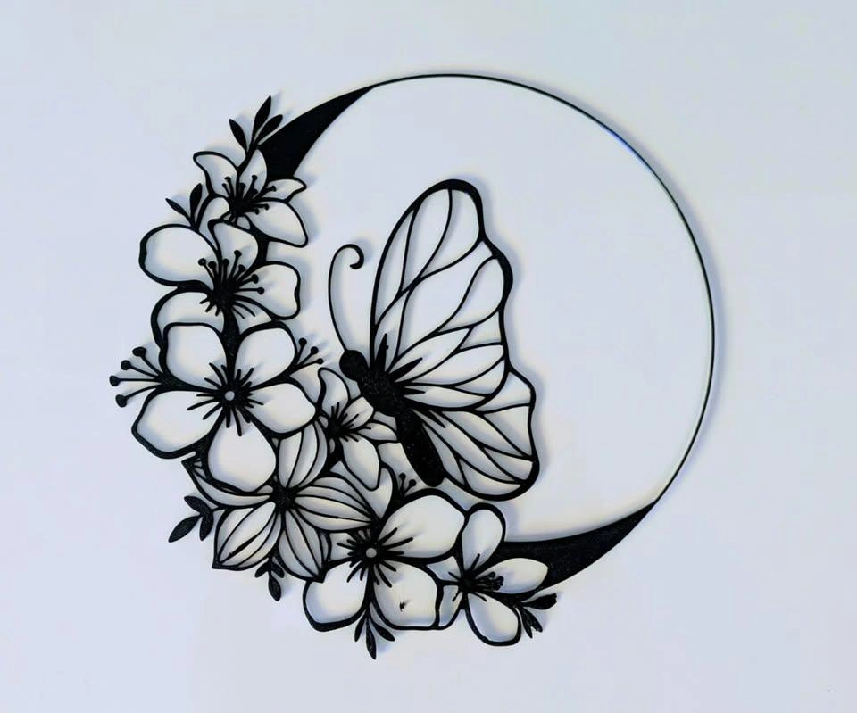 6.5 inches $10 9 inches $15 11 inches $25 12.65 inches $40 Elegant lines outline a graceful butterfly and blooming flowers, minimal yet detailed. Perfect for living room, bedroom, study, or office decoration to add an artistic touch.