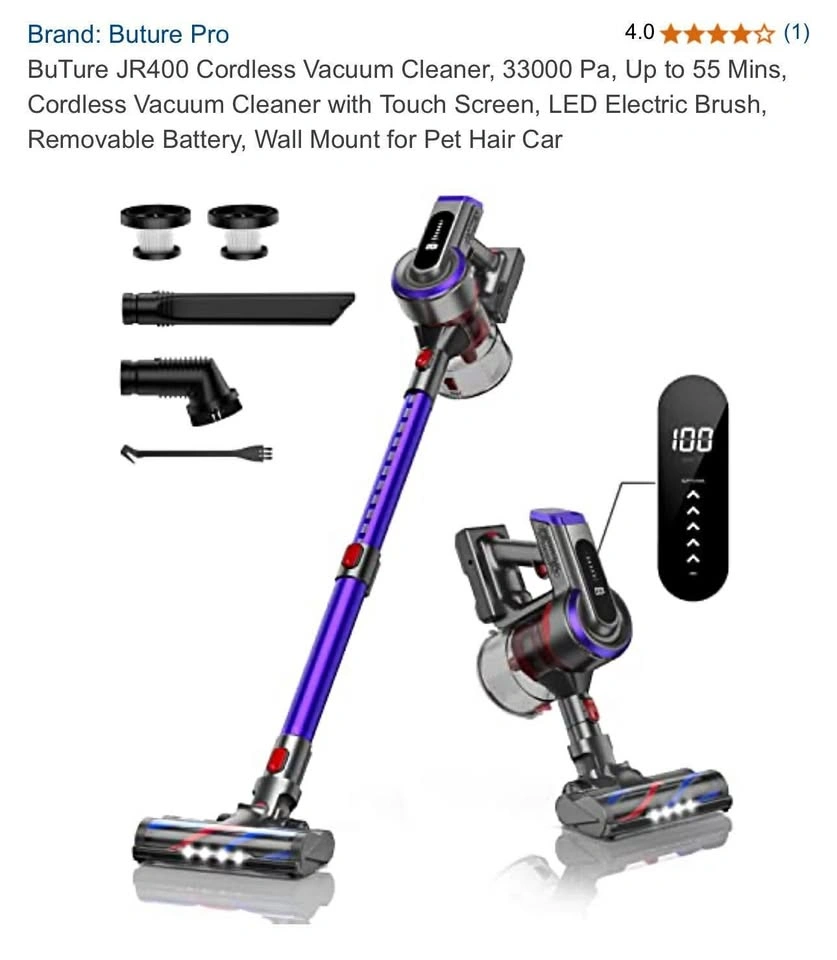 New in box Buture JR400 cordless vacuum cleaner with a 50 mins runtime. It features a 1.2L super large-capacity dust box and an adjustable telescopic tube. Equipped with a 400W brushless motor and various brush accessories. Its powerful suction power of up to 30KPa can remove fine dust and dirt. It has 7 * 2500 mAh batteries to ensure a cleaning time of up to 55 minutes (15 minutes at high suction and 55 minutes at low suction). The battery can be removed and replaced. Fully charged in 4-5 hours. Pick up - Courtice. Please check my other listings!