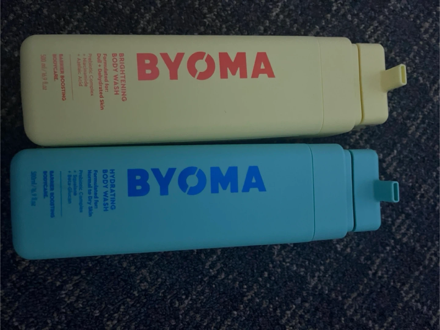 Selling a set of BYOMA body washes! One is the Brightening Body Wash, formulated for dull and dehydrated skin with prebiotic complex, niacinamide, and azelaic acid. The other is the Hydrating Body Wash, formulated for normal to dry skin with prebiotic complex, squalane, and beta-glucan. Both are 500ml