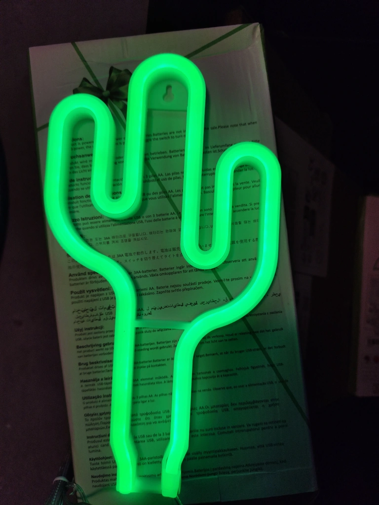 Add a fun touch to your space with this cactus neon light! It's a great way to brighten up any room and create a cool atmosphere, perfect for a desk or shelf