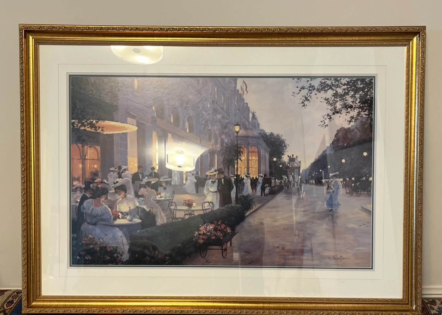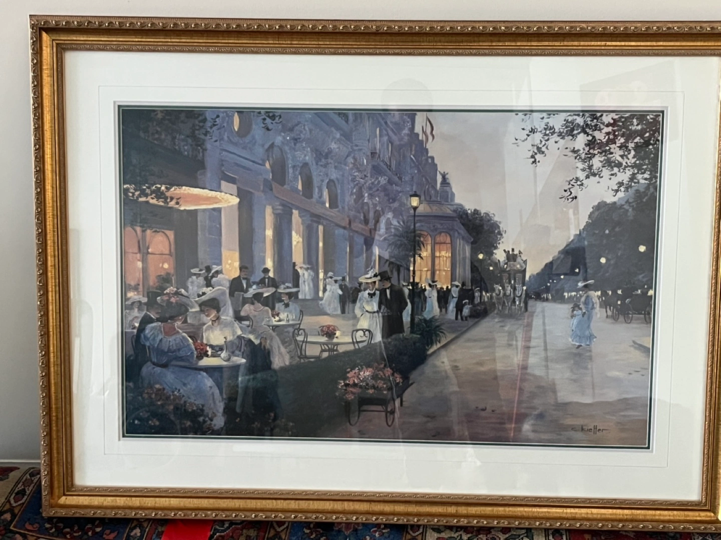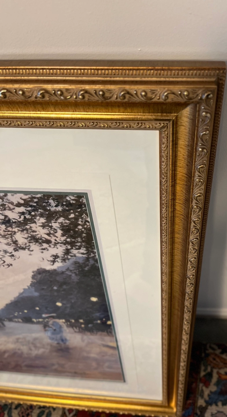 Pristine condition, high end framing by the famous Christa Kieffer. Width: 41.2” Diagonal: 50” Height: 30”