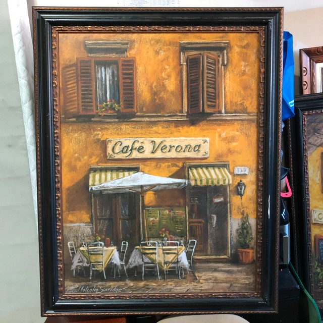Courtyard Cafe Framed Canvas Art Print 37"x47"