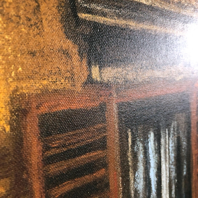 Vintage Painting Creek Mountain Landscape 31"x55"