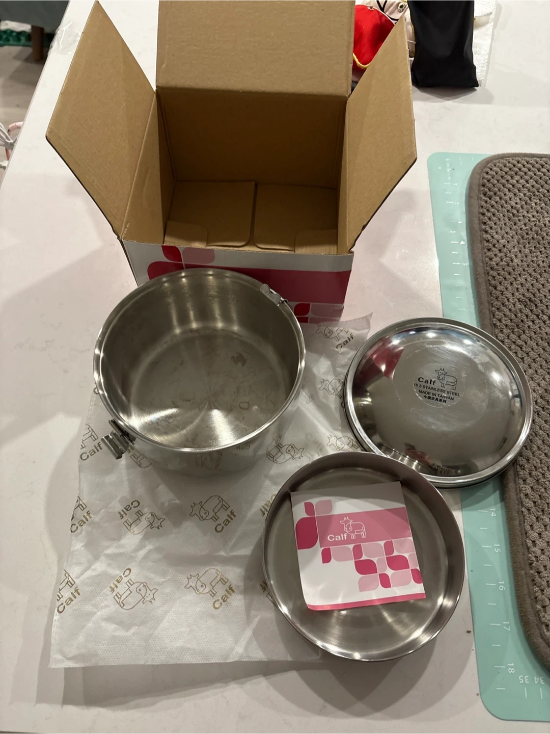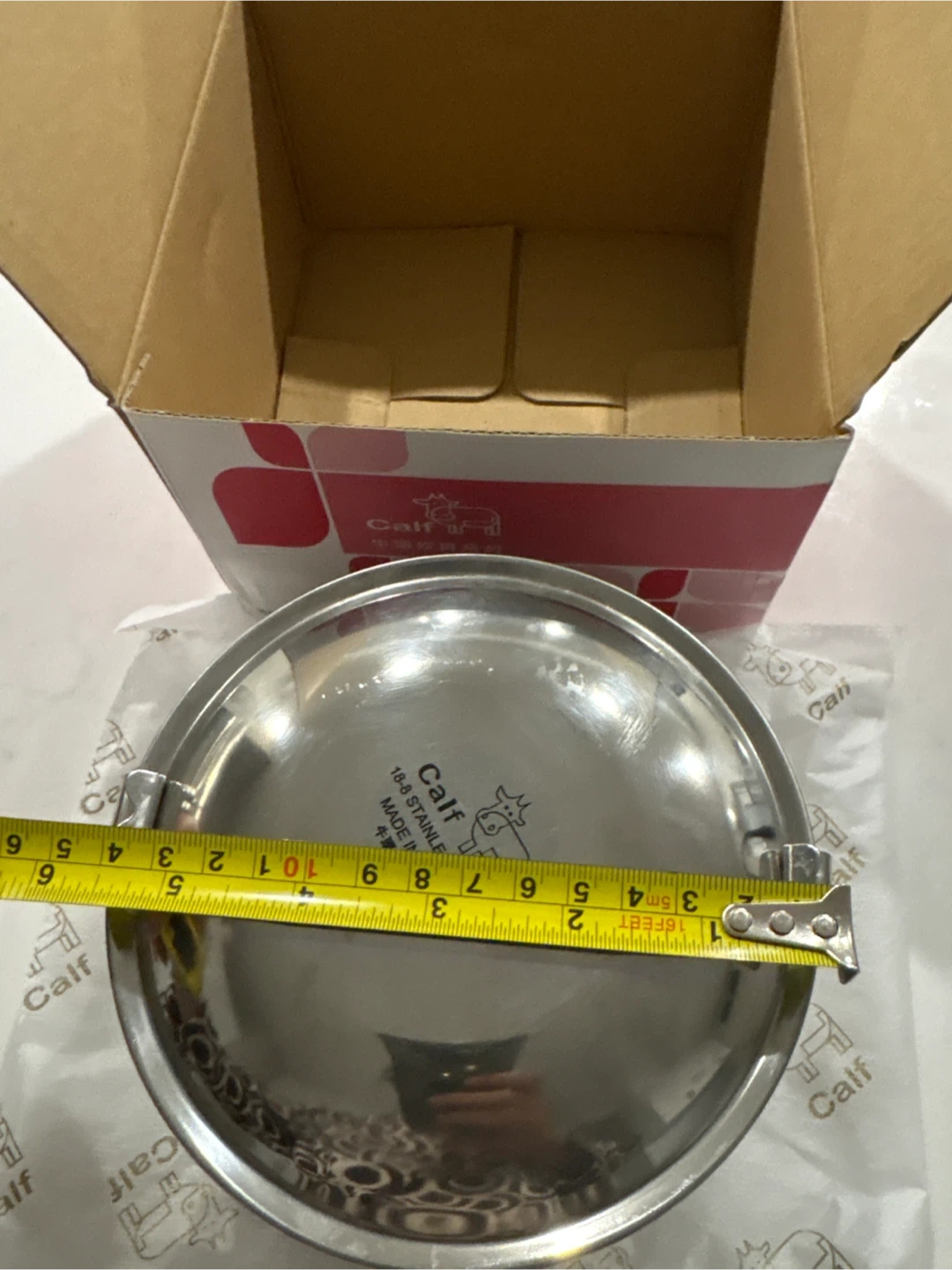 Selling a Calf stainless steel food container! It comes with its original box. It's in great condition and ready for a new home. Perfect for packing lunches or storing leftovers. The dimensions are approximately 6 inches in diameter and 4 inches in height. It's made of 18-8 stainless steel. All brand New total I have 3 bowel with boxes