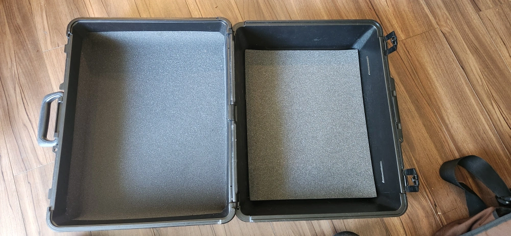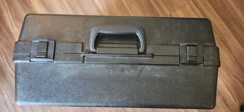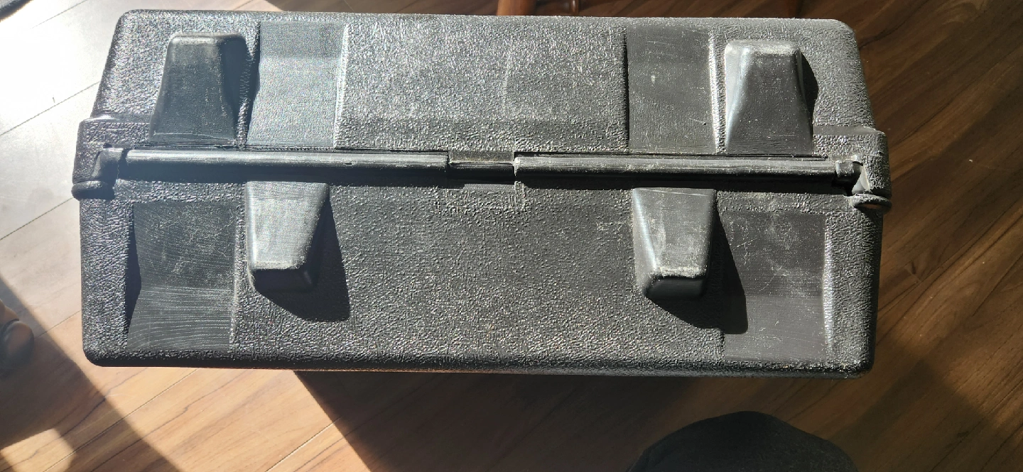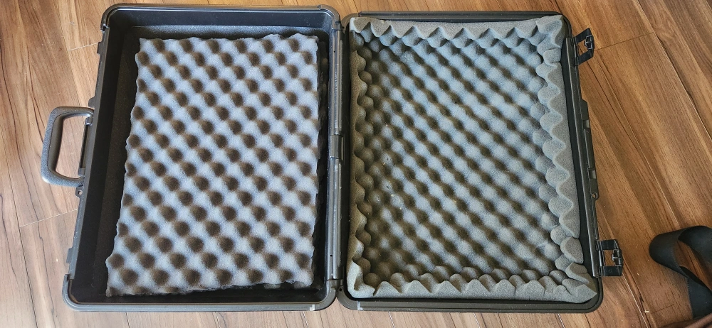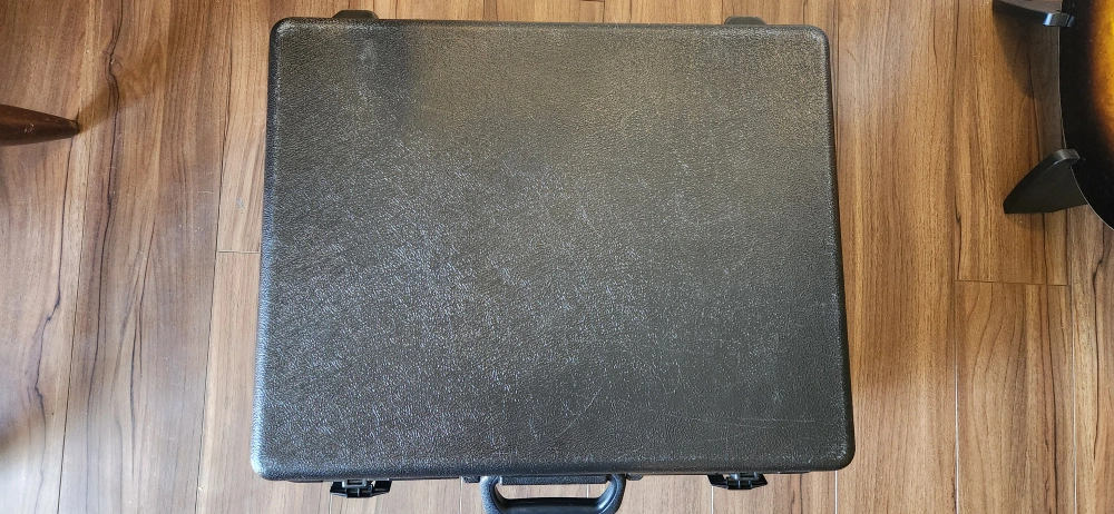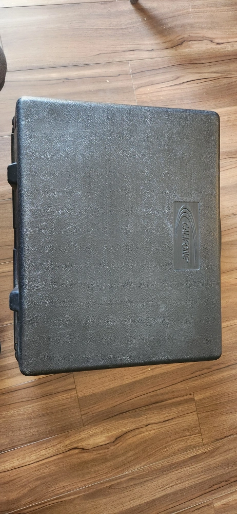 Selling a black hard case from Calfone measuring L 20" x W 15" x H 9.5". It is in excellent condition on the inside with attached factory foam that looks new. The outside has some scratches from being used. It has a hole in bottom and top cover used for attaching locks and seals for shipping purposes or to secure it better. It has a handle and secure latches. Inside, there's foam padding to protect your items. Great for storing and transporting delicate equipment or valuables! I am also including 3 pieces of black rugged foam for securing your smaller equipment from moving inside. It works great. New, this carrying case sells for $150 CAD with shipping and taxes included on schoolspecialty.ca I have sold my DJ equipment and won't be needing this anymore. 80 or best offer.