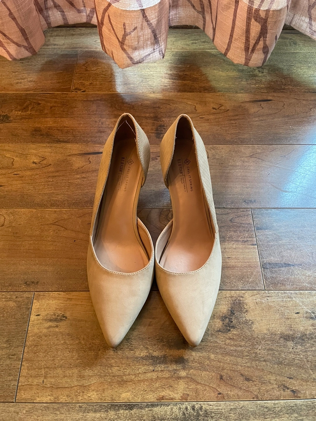 Selling a pair of Call It Spring heels in a lovely beige colour! They are a size 7. Perfect for adding a touch of elegance to any outfit! Open to adjusting price. Don’t hesitate to ask for more photos!