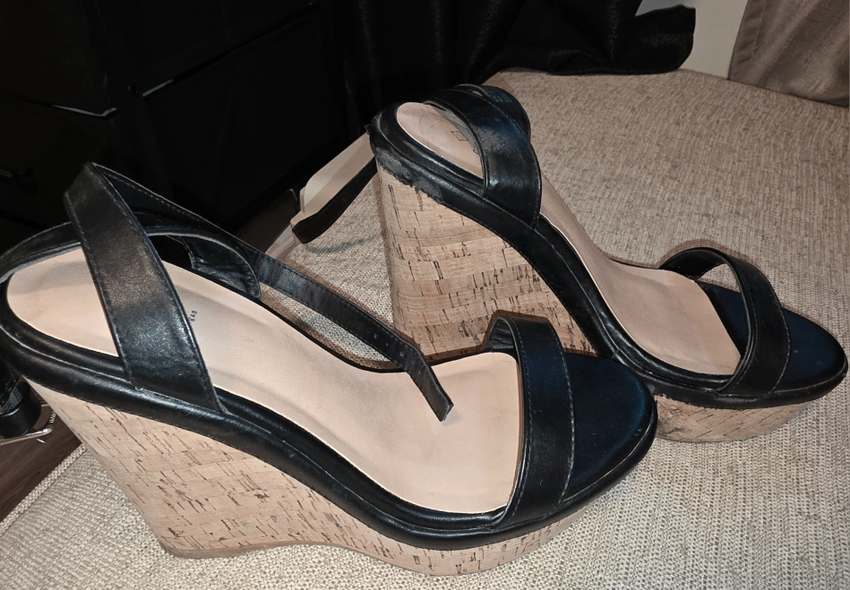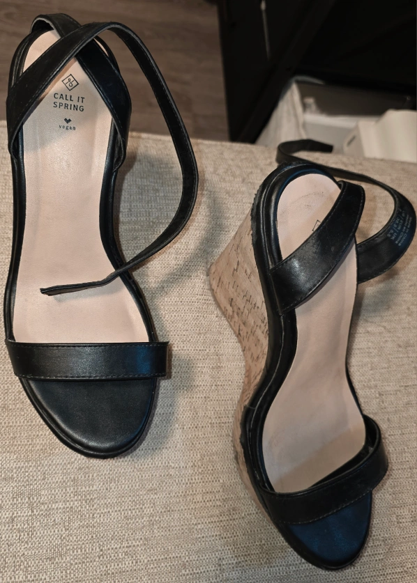 Selling a pair of Call It Spring wedge sandals. They're black and size 8. The wedges are a light cork material. Perfect for summer!